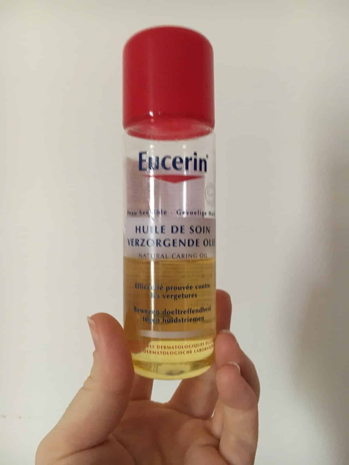J’utilise l’huile Eucerin dont je suis devenue fan car je la trouve efficace, qui pénètre vite.