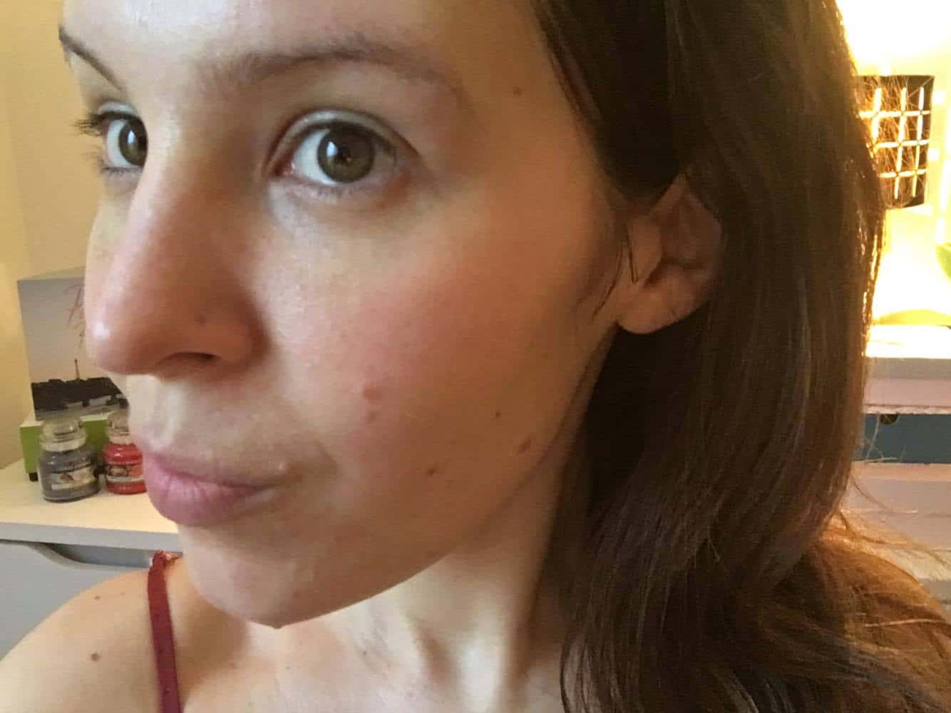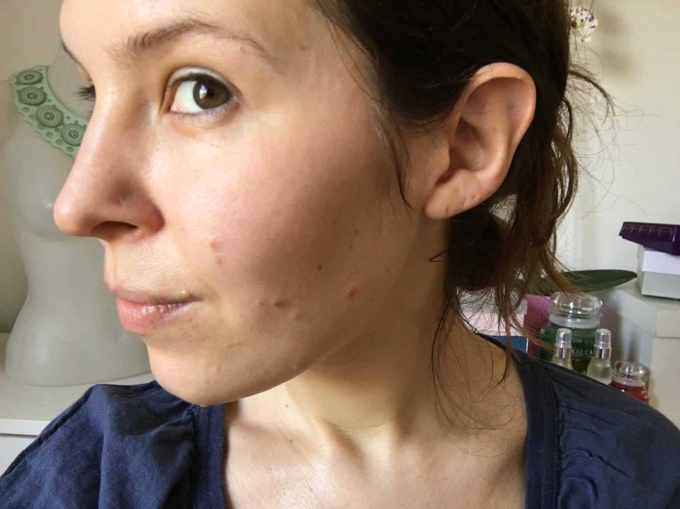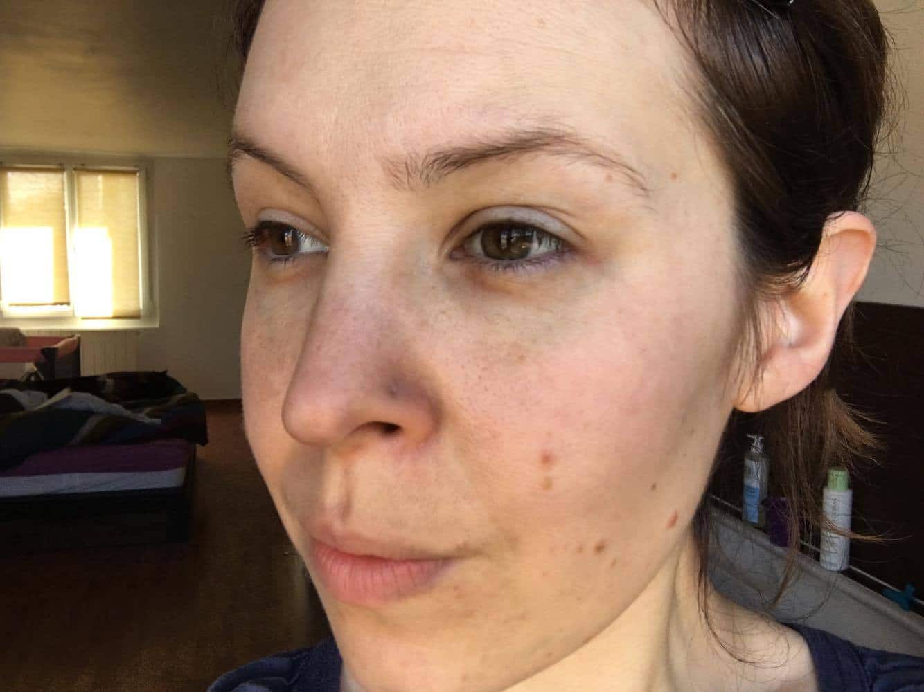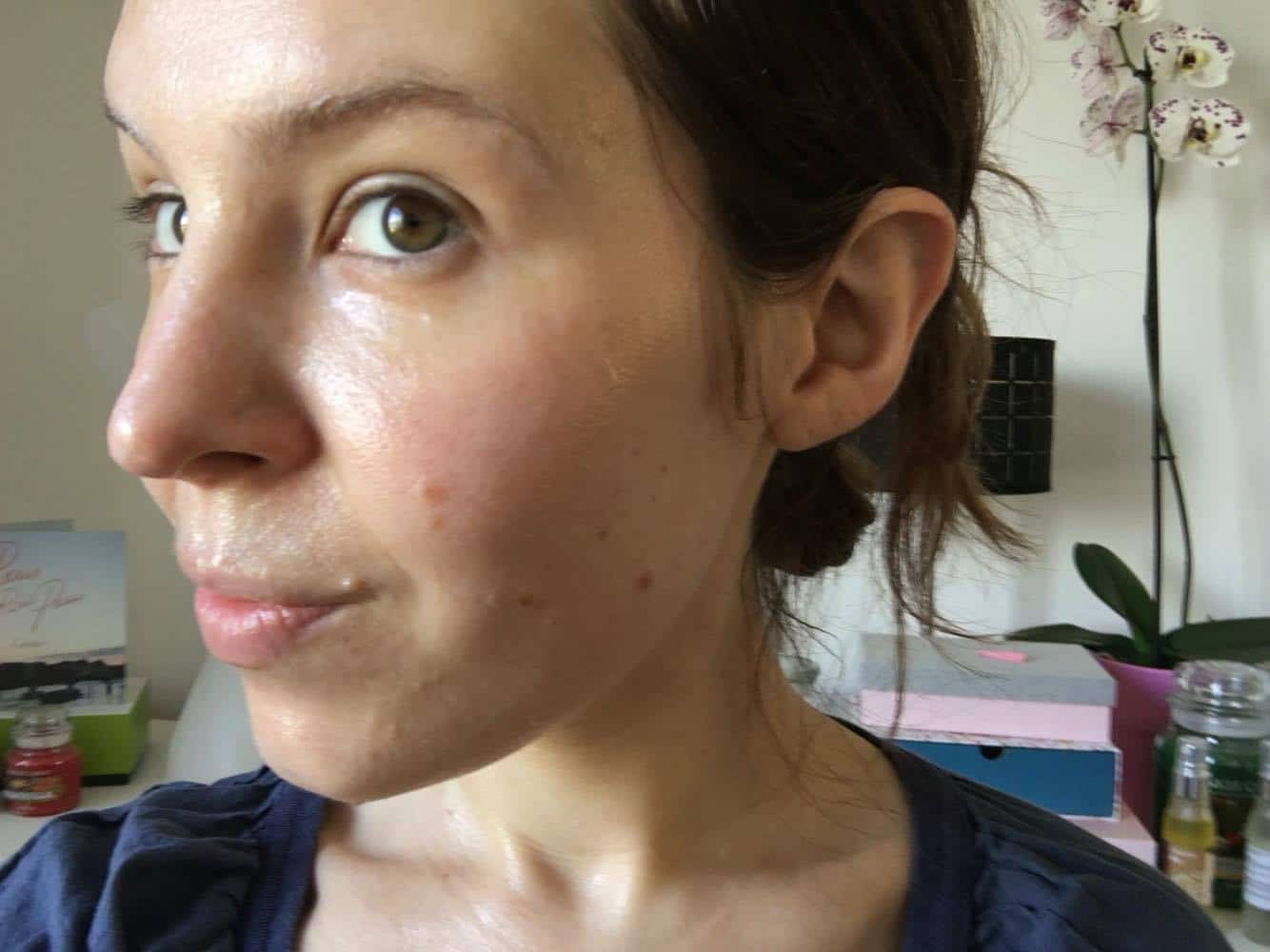 Ma peau avant, j’ai le teint terne, fatiguée, c’est une période assez difficile, ma fille fait ses dents, une nuit aux urgences m’aura achevé . Ce masque tombe a merveille, un moment de quiétude.