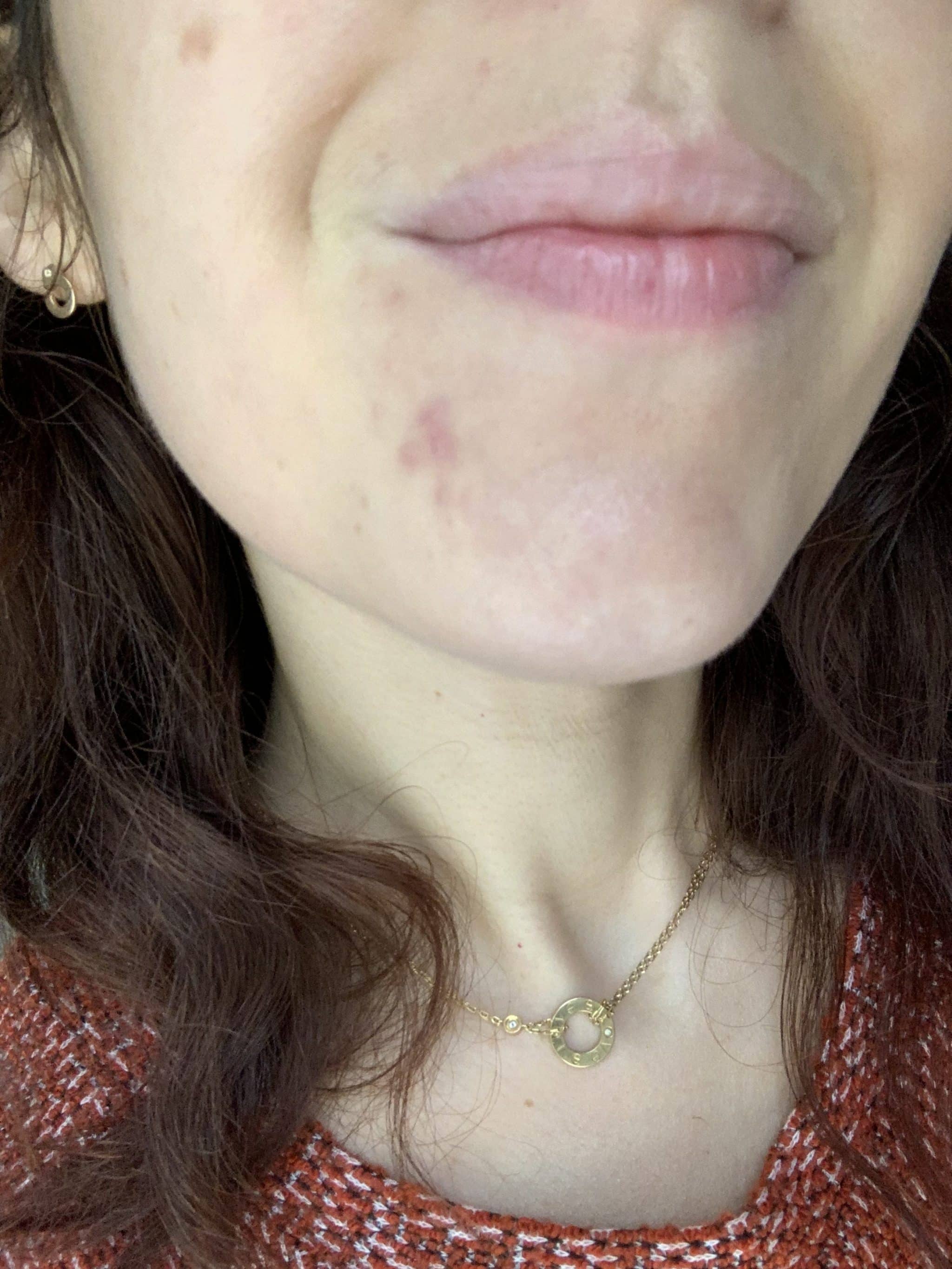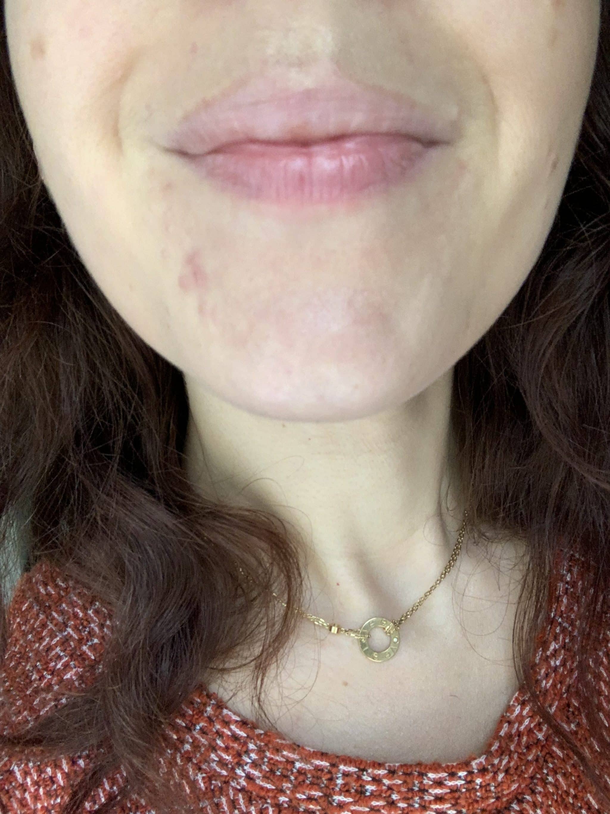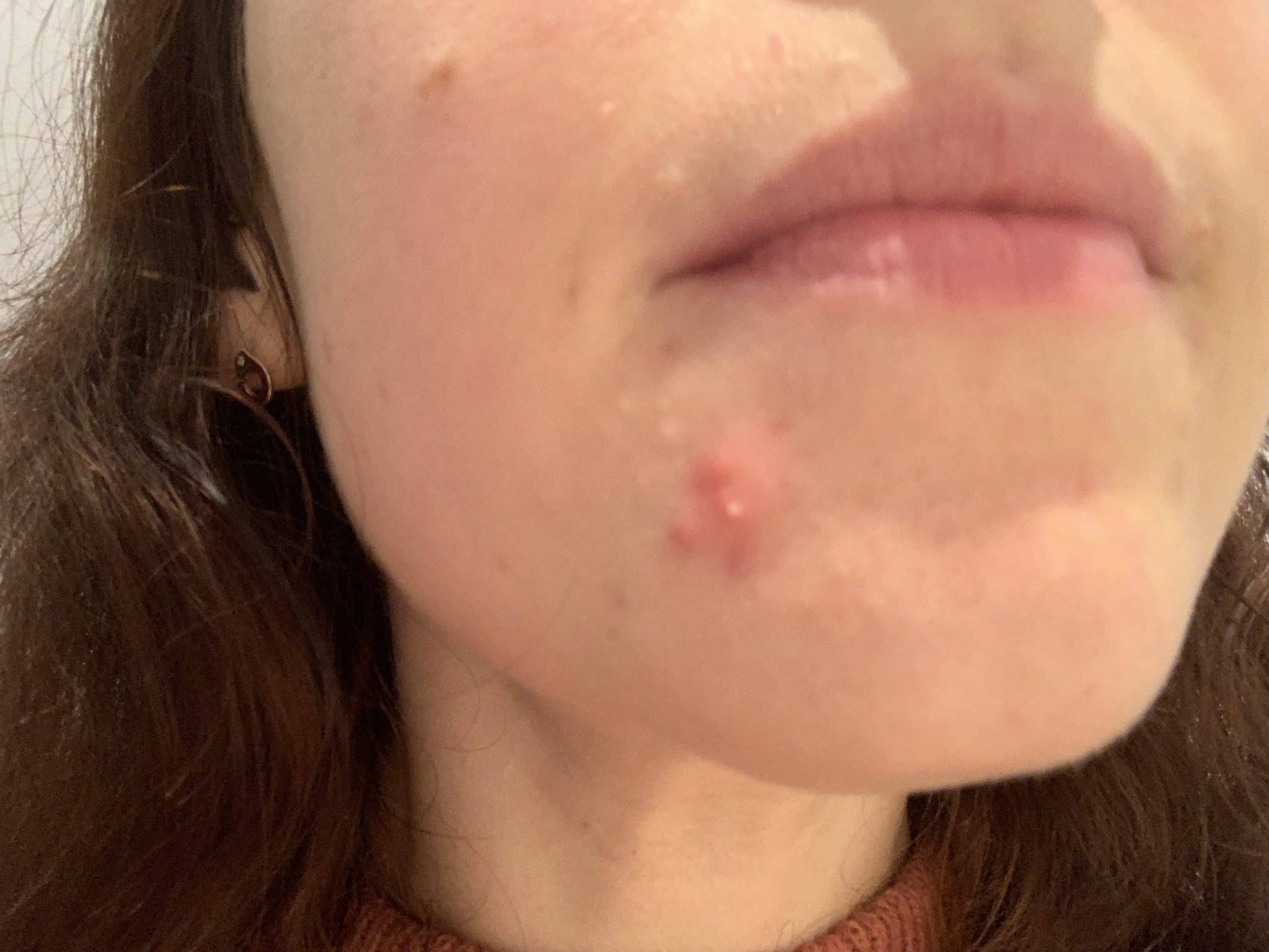 Premièrement on parle du départ, un bel acné hormonal sur mon menton, des années que je fais avec . Je n’ai jamais caché cet acné sous du maquillage, je vis, je filme mes vidéos Youtube, ma vie de blogueuse avec cet acné, mais j’aimerais trouver une solution pour moi, ma féminité .