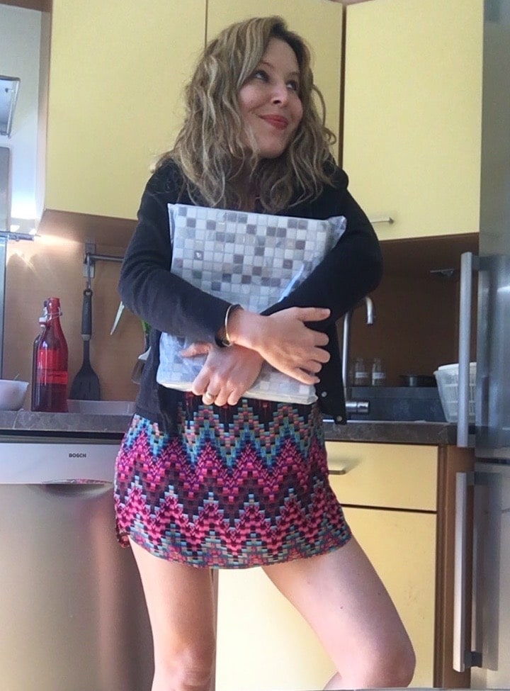 Ça c’est le jour où j’ai reçu ma mosaïque autocollante. Elle est d’une belle qualité, je suis ravie car je sais que ça va rendre bien. J’ai exaucé cette envie en moins de 3h. D’ailleurs, je vous raconte ça en vidéo et dans cet article qui j’espère donnera des envies de relooking de pièces.