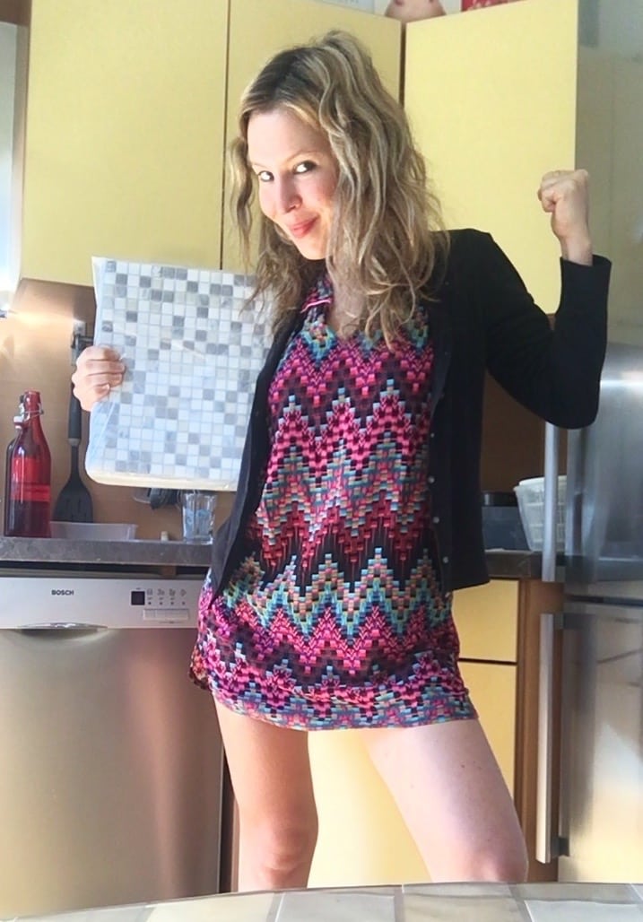 Je suis ravie d’avoir changé, relooké, ma cuisine avec le carrelage autocollant The Smart Tiles en gardant l’existant.
