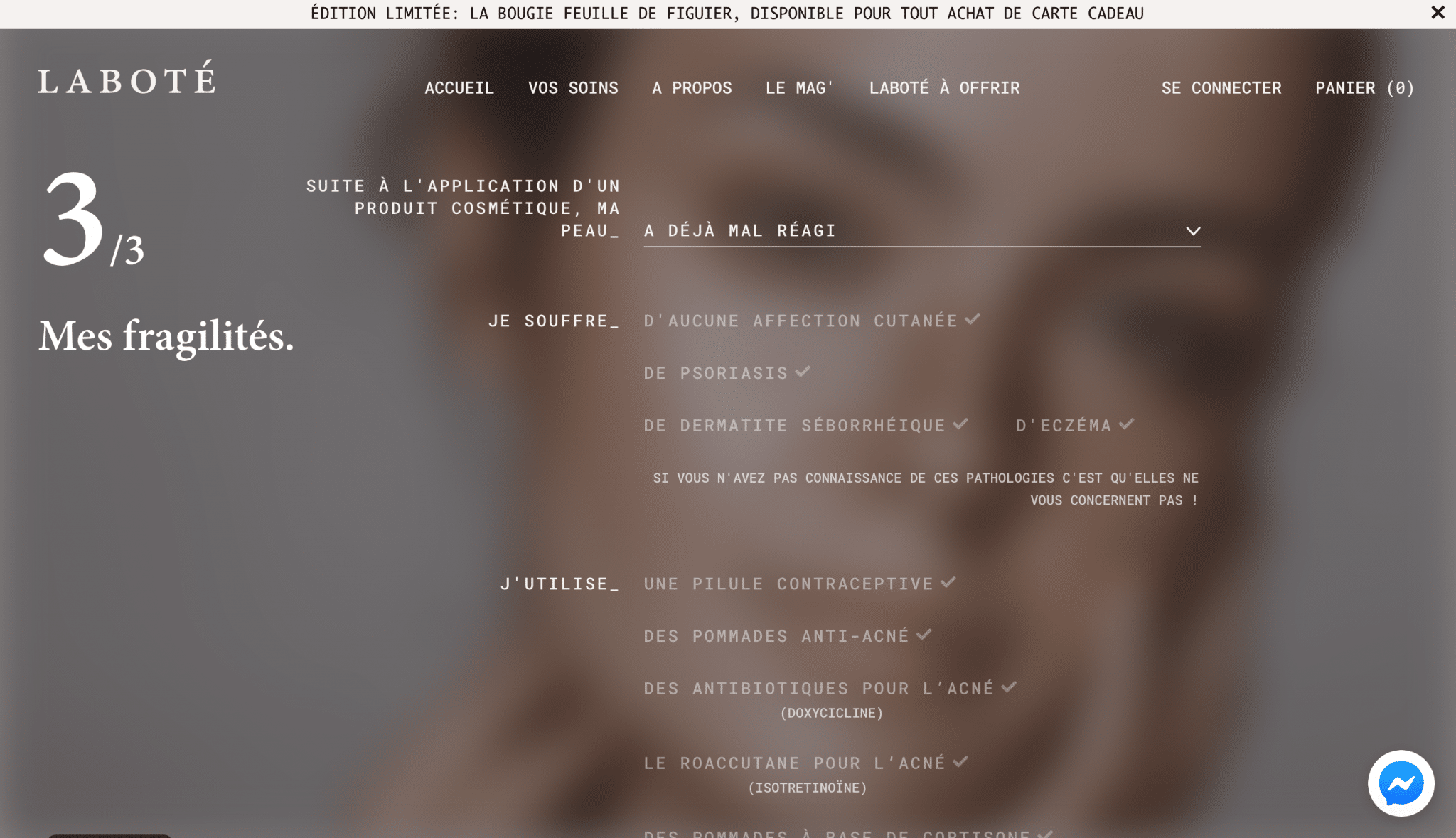Etat des lieux, mes besoins pour ma peau .
