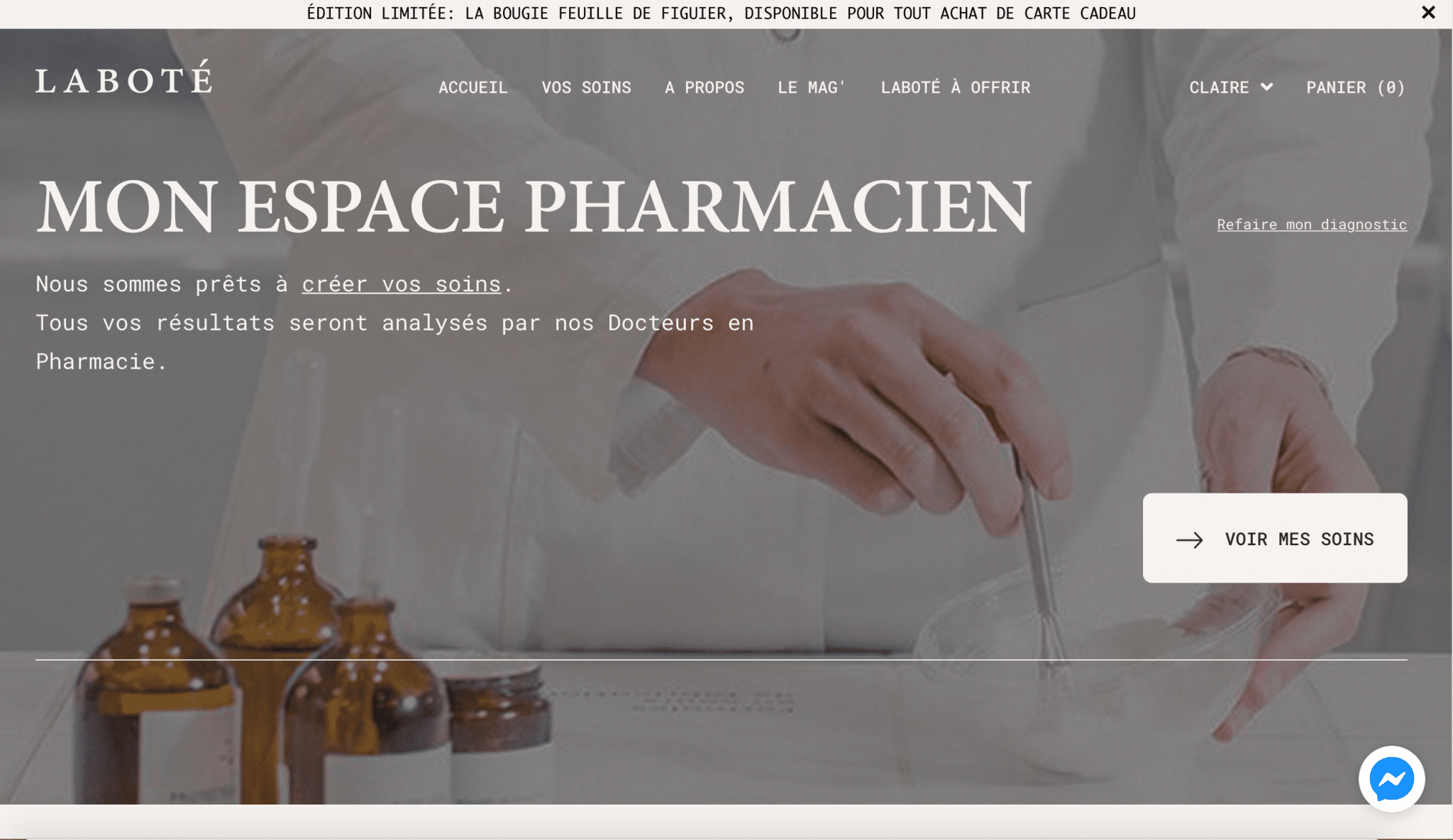 Des soins ont été fabriqués pour mes besoins dans le laboratoire la Boté. J’attire votre attention car ce sont des soins naturels, la cosmétique botanique, du sur mesure .