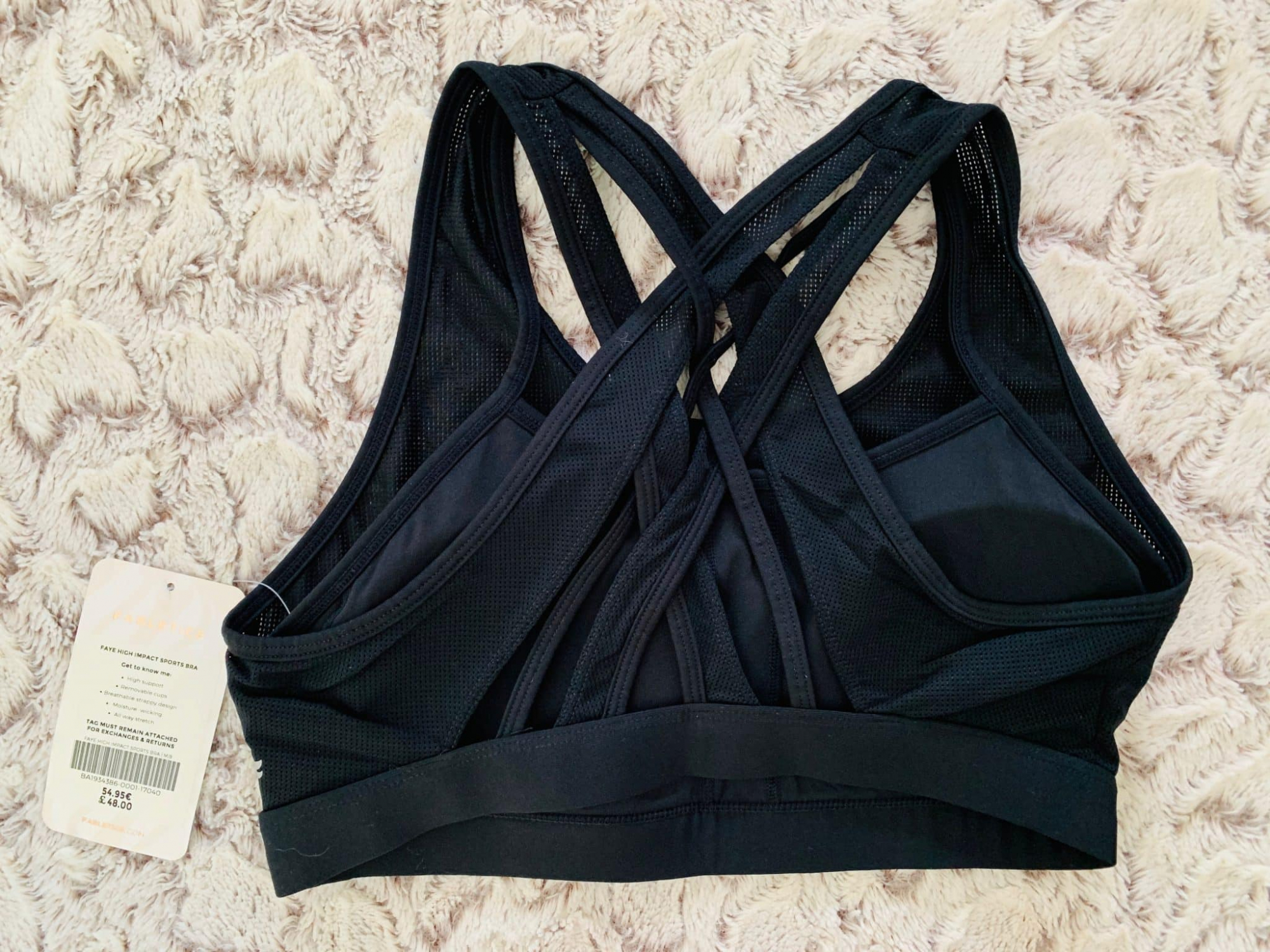 La jolie brassiere en taille S, elle tient parfaitement la poitrine lors du jogging. Elle est parfaite, féminine et respirante. Elle sèche rapidement aprés l’effort. J’adore les détails dans le dos, le filet de pêche sur le devant, elle est légèrement doublée.