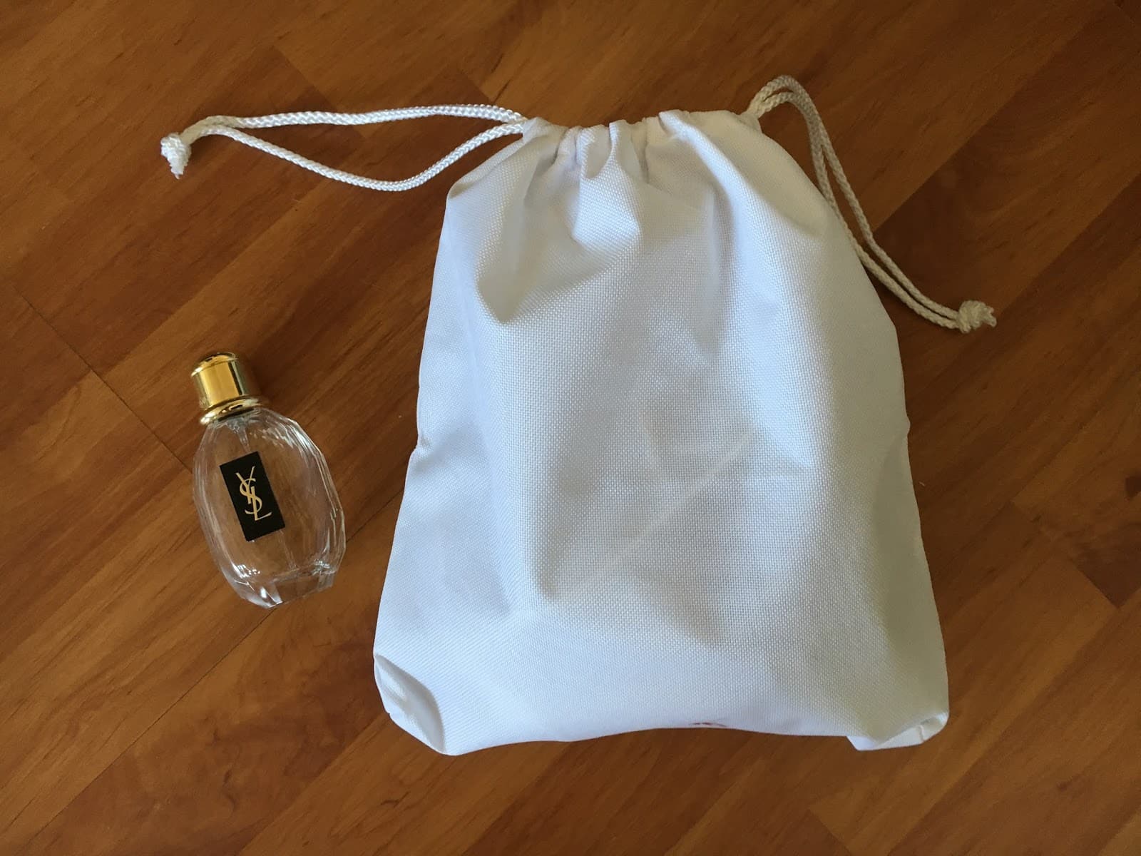 Pour le ranger, une pochette est offerte, il n’est pas énorme, j’ai mis mon parfum pour le comparer.
