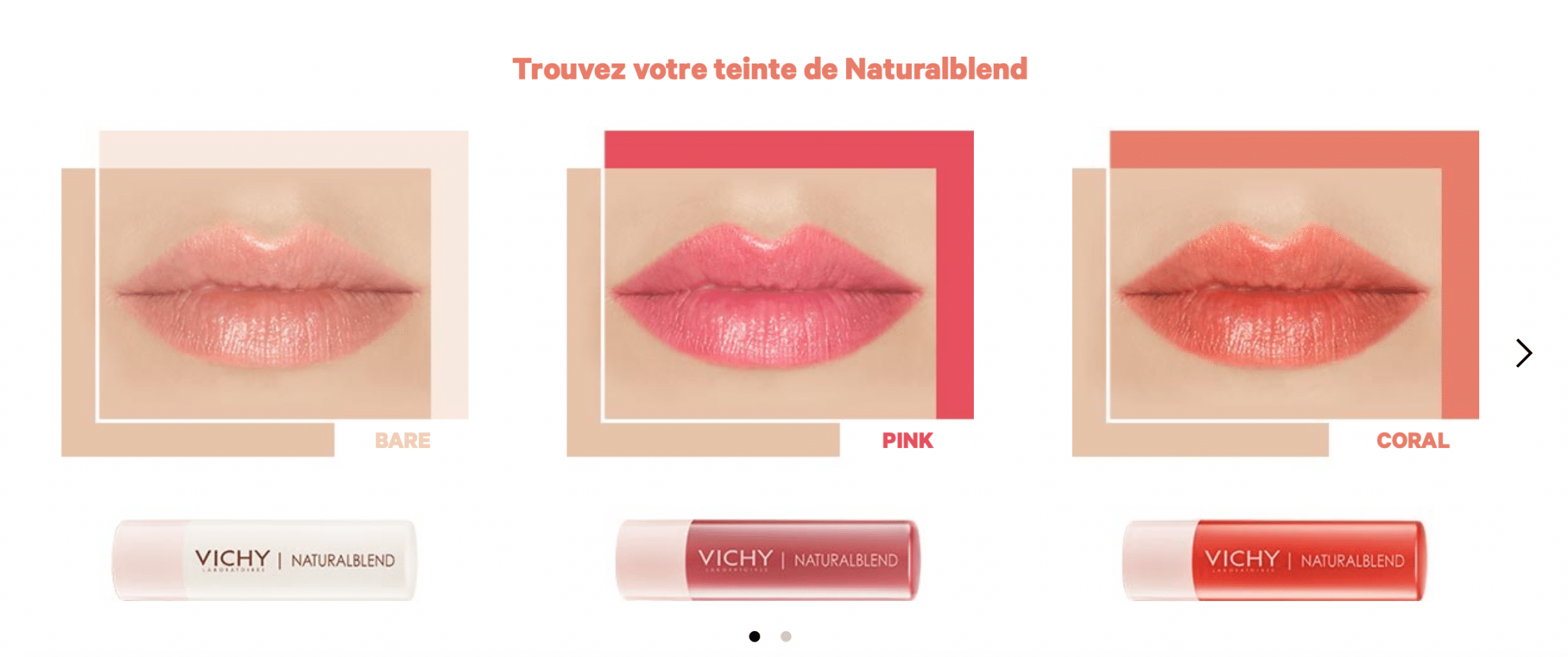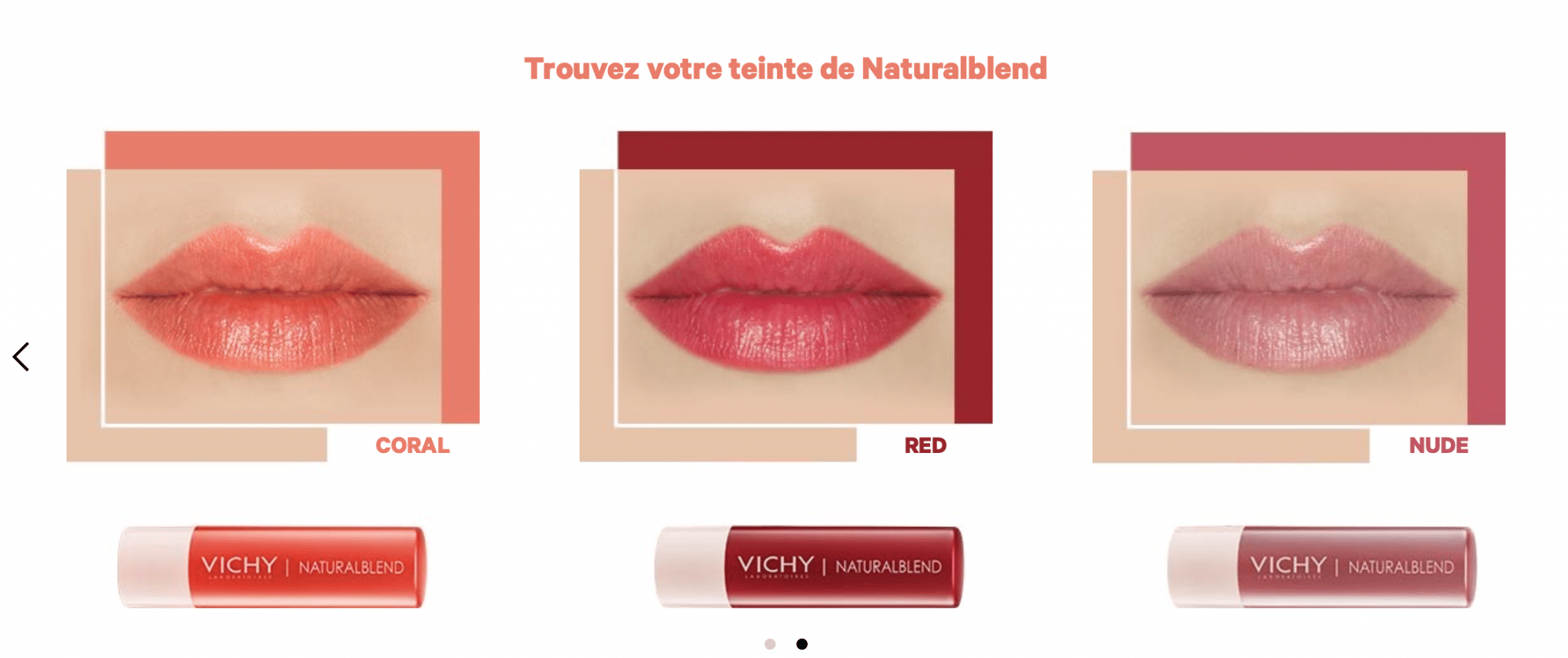 Naturalblend Vichy est décliné en plusieurs couleurs, du rouge, du corail, du nude, du transparent…