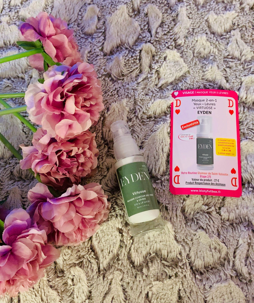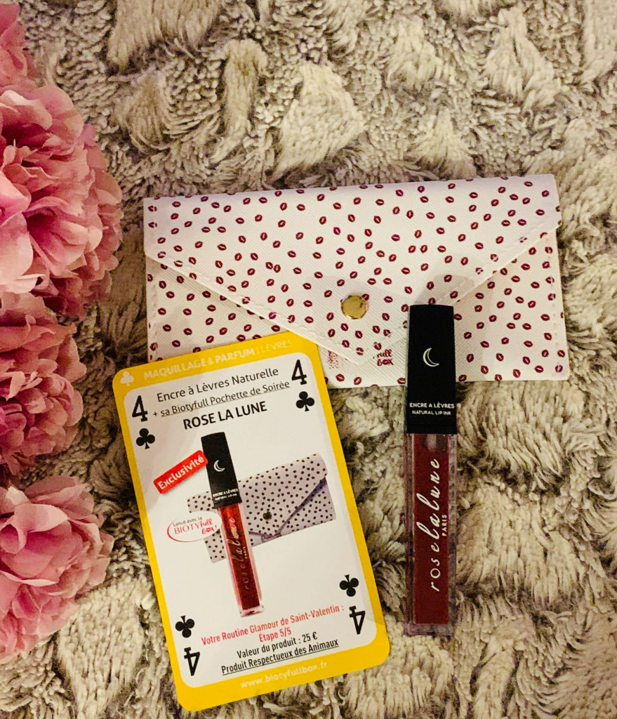 Un coffret de Février glamour, doux et sensuel, des soins de qualité, du maquillage. J’ai aimé cette Biotyfullbox de St Valentin à travers les 5 produits qui la compose . En numéro 1, je mets le liner car il est de qualité et j’adore dessiner mes yeux, en 2 le démaquillant liniment fort utile, j’aime trouver de l’utile dans mes boxs beauté canon avec sa composition clean. En troisième position, les sels de bains parfumés aux fruits rouges super sensuels et fun. Enfin j’ai adoré la qualité du soin pour les yeux et la bouche Eyden, une découverte, je ne connaissais pas. Je termine sur la mise en valeur de la bouche qui pour moi est un indispensable dans une box de St Valentin. Rose La Lune est une marque que je connaissais déjà grâce à la Biotyfullbox . La teinte rose fuchsia de cette encre à lèvre est parfait.