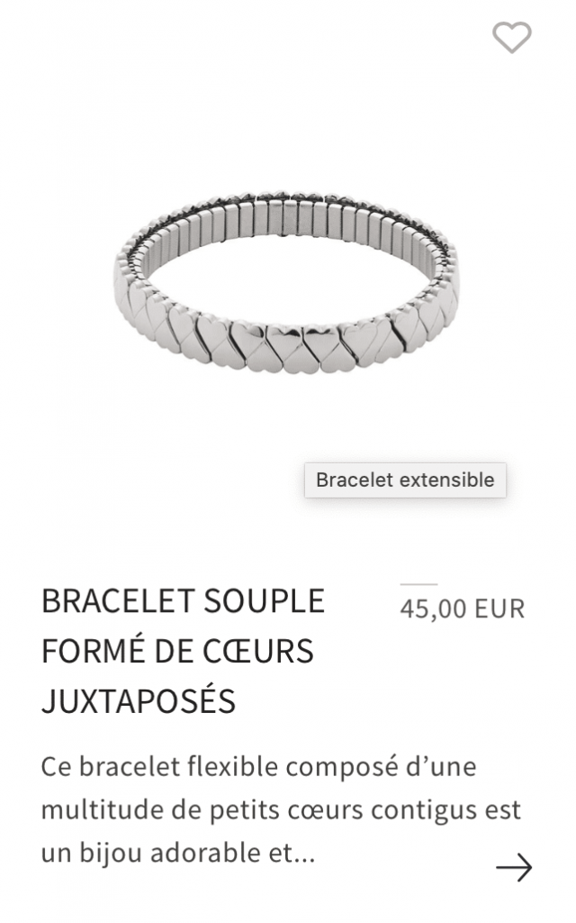 Retrouvez ici tous les bracelets pour les femmes, vous remarquez que les prix varient entre 35 et 65 euros voir plus .