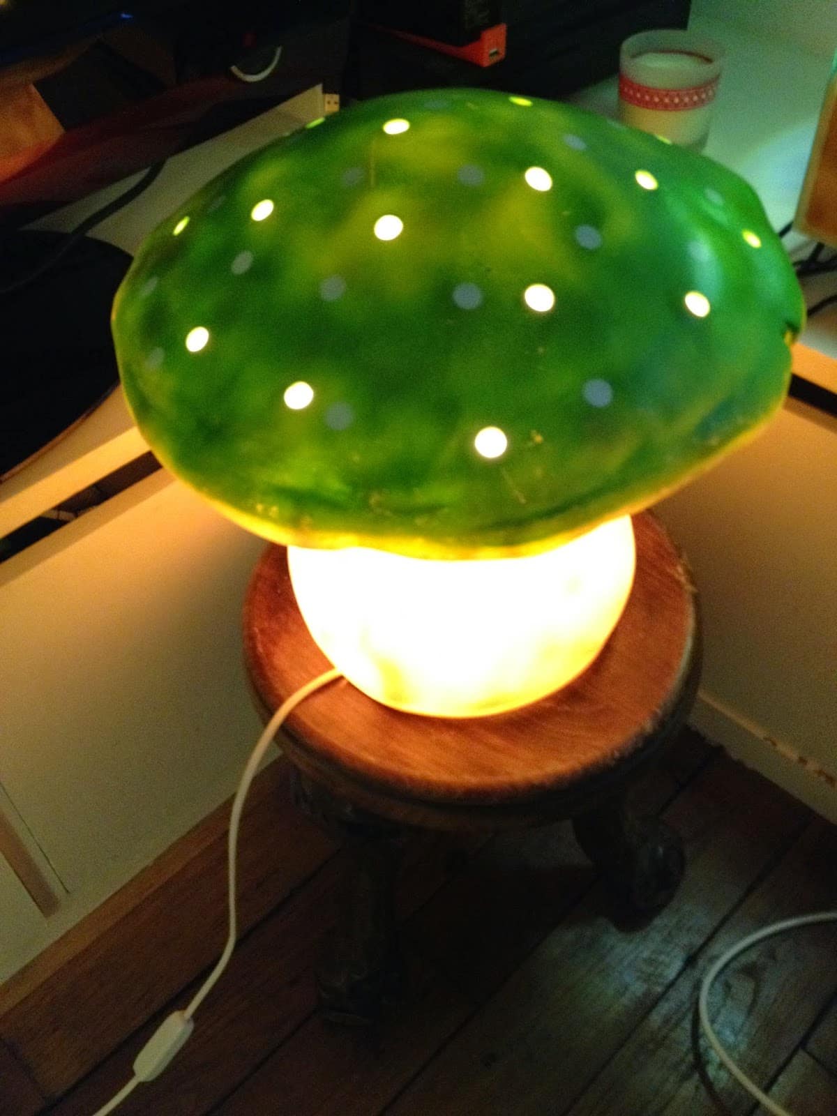 La lampe Heico champignon sert de veilleuse et je l’ai depuis un moment, j’en suis ravie. Une lumière tamisée, des petits points au plafond, une ambiance féerique. Elle est belle éteinte comme allumée . Cette lampe apporte un éclairage unique et un objet ultra déco et tendance .