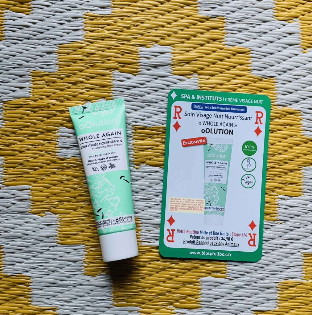 Prendre soin de soi est une de mes doctrines, je ne me laisse pas aller même les jours gris. Cette box beauté clean me permet de découvrir tous les mois des soins utiles, une façon de réveiller ma routine du quotidien. La Biotyfullbox Janvier 2023 est sur le thème Mille et une Nuits, une valeur totale de 94 euros. Vous allez découvrir 6 soins utiles à travers 4 étapes, l’année commence fort! J’ai beaucoup apprécié cette édition car il y’a des recettes a réaliser, c’est canon.