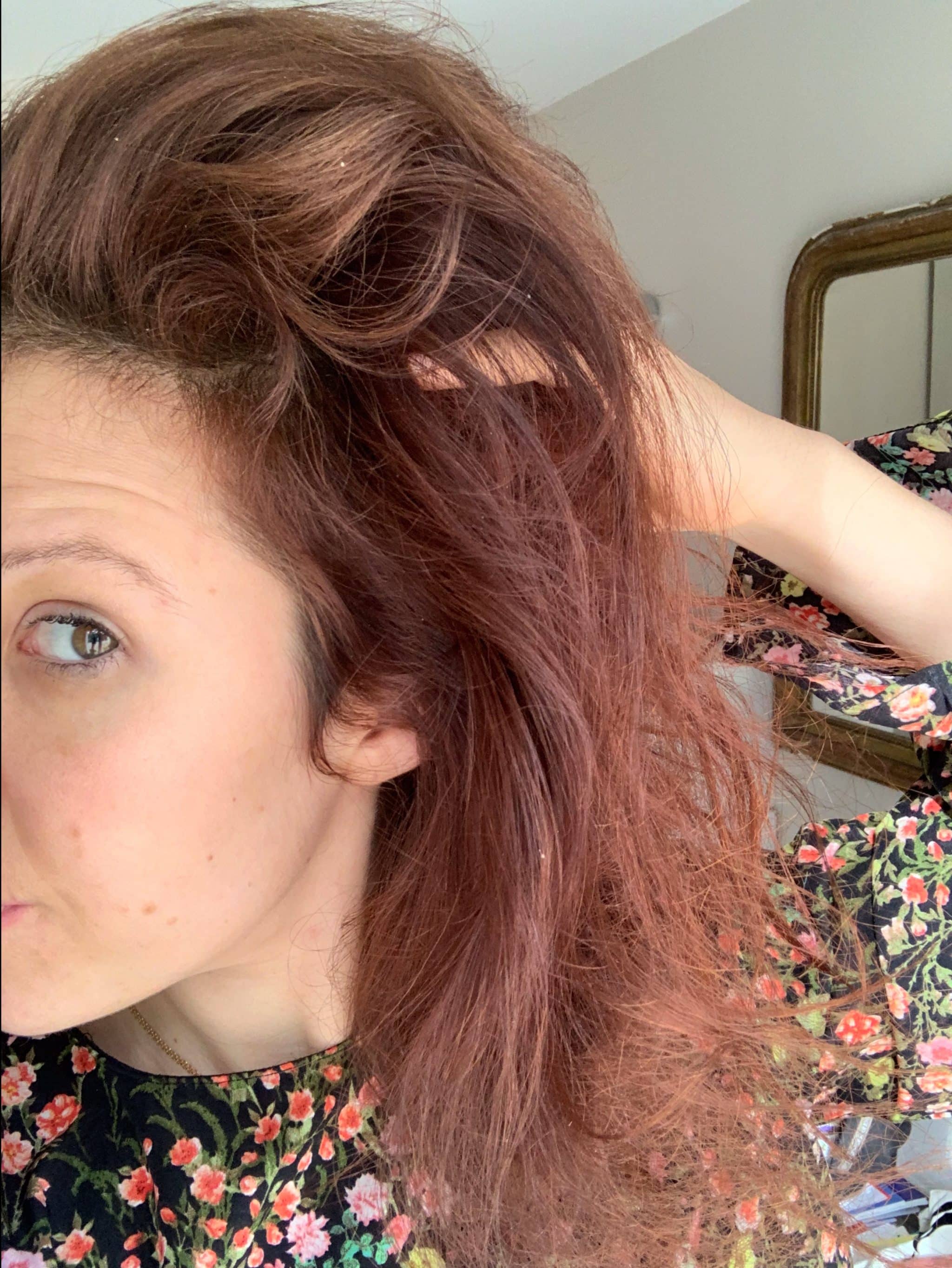 Bref, j’ai regretté mon joli châtain éclairci par l’été et j’ai attendu que cette coloration dite « temporaire » s’estompe au fil des shampoings mais malheureusement ce n’a pas été le cas, je suis restée Auburn . Alors j’ai acheté un soin repigmentant Mulato totalement naturel dont je vous parlerais pour accentuer le coté cuivré ( retrouvez le ici ) . J’ai pu transformer naturellement mon auburn en auburn cuivré, un peu mieux …