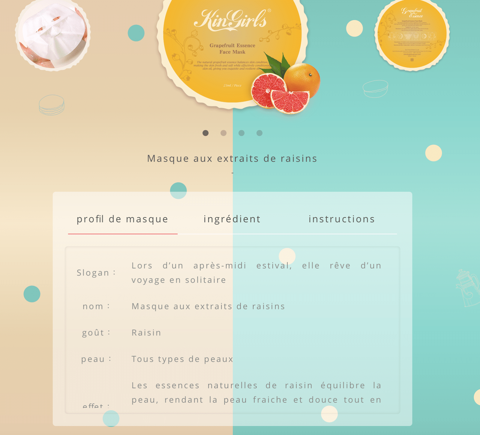 C’est très agréable, on sent sa peau dorlotée, l’idée du tissus imprégné c’est vraiment super comme concept. Le masque kin girls au pamplemousse agit sur ma peau en profondeur.
