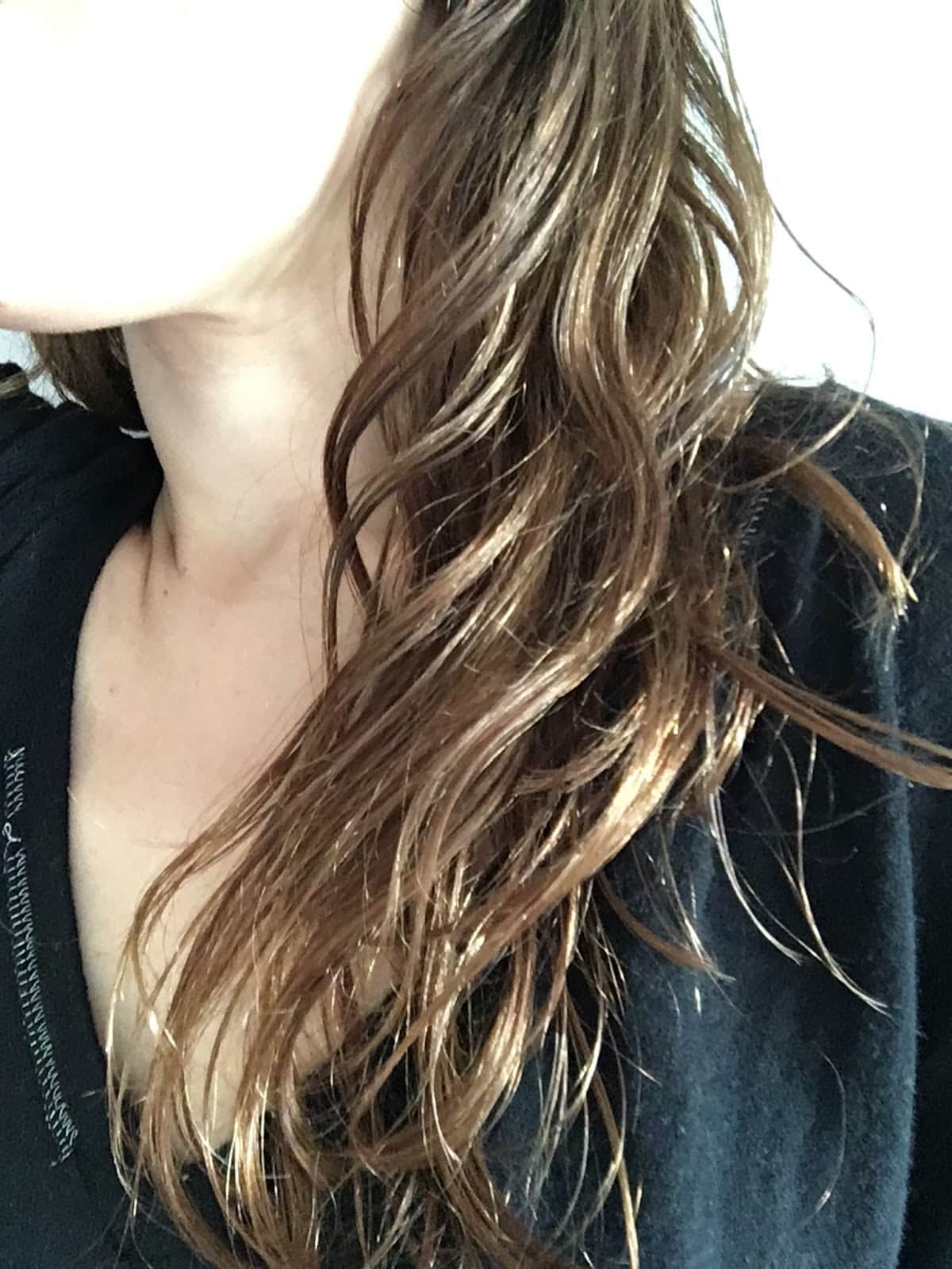 On continue l’expérience avec cette huile sur mes cheveux et mon corps .
