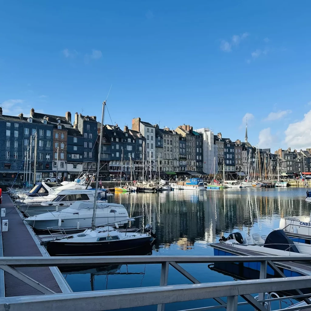 À environ 35 minutes en voiture de Villers-sur-Mer, la ville d’Honfleur séduit par son vieux port. Ses maisons à colombages et son atmosphère artistique sont tellement romantique. C’est une halte incontournable pour les amateurs de peinture, de photographie ou de flânerie. Les rues pavées regorgent de galeries d’art, de petites boutiques d’artisans, de brocanteurs et de cafés typiques. On peut y passer des heures à se perdre entre antiquaires et petites échoppes. C’est aussi une ville idéale à visiter avec un chien, les quais et les ruelles se prêtent aux promenades tranquilles.