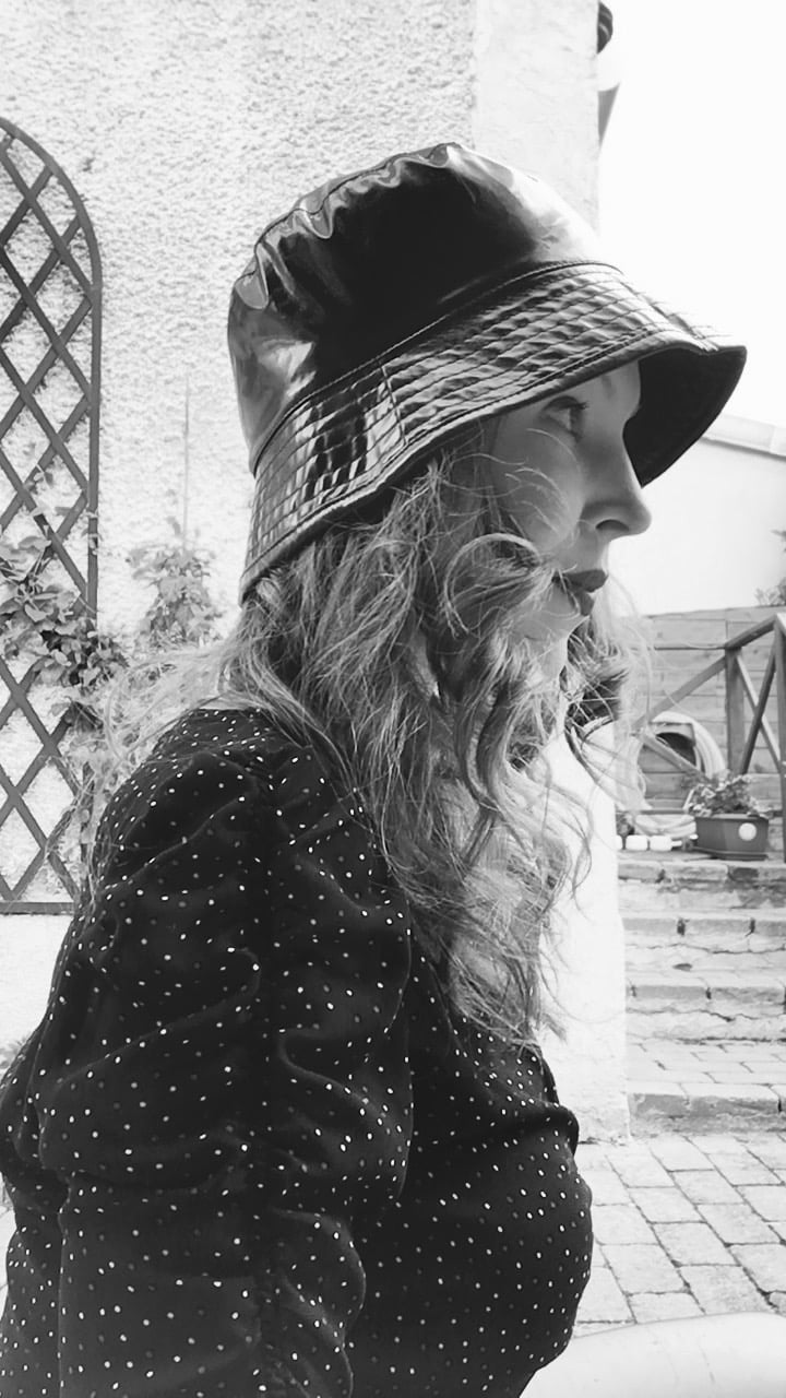 Mon petit chapeau « bob » pour me protéger de la pluie car avec la poussette je ne peux pas tenir mon parapluie. Il vient de chez La Redoute et il est vernis, je l’adore, il est original. Je ne connais pas la moyenne d’âge qui porte ce modèle ci mais t’en mieux si je suis la seule qui a la trentaine, comme ça il est vraiment à moi. ( je plaisante ).