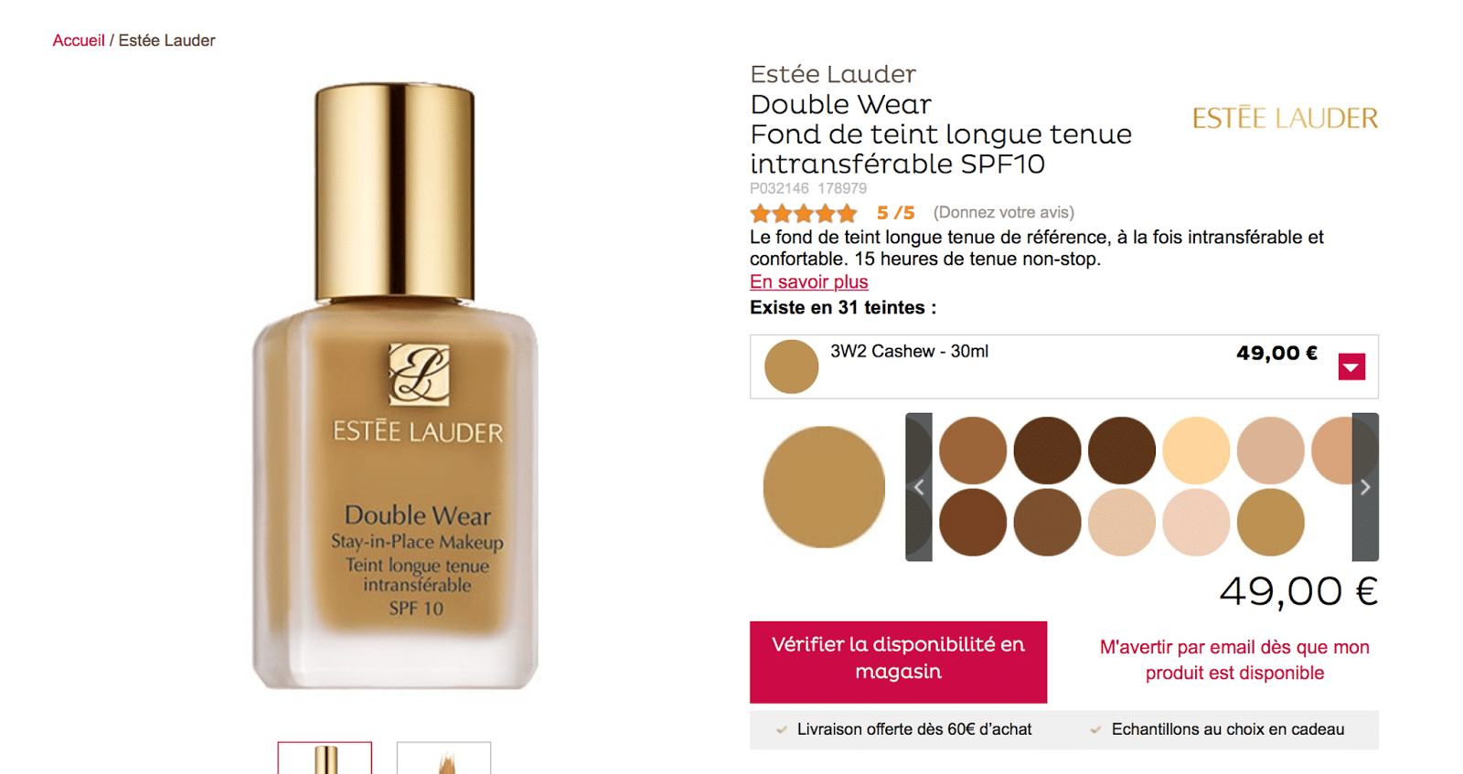 Le fond de teint double wear Estée Lauder, la teinte Nude.