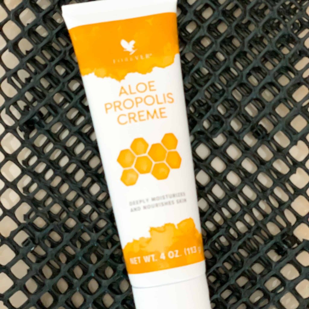 Enfin, je n’allais pas écrire un article sur Forever Living sans vous présenter un soin à base d’aloe vera. Cette crème réunie à la fois l’hydratation de l’aloe vera, la richesse de la ruche avec du propolis, de la camomille, de la vitamine A et E. Nous sommes sur un soin qui hydrate, qui réconforte et qui répare. Sa composition est riche de 74,1 de gel d’aloes, 0,5 de propolis.