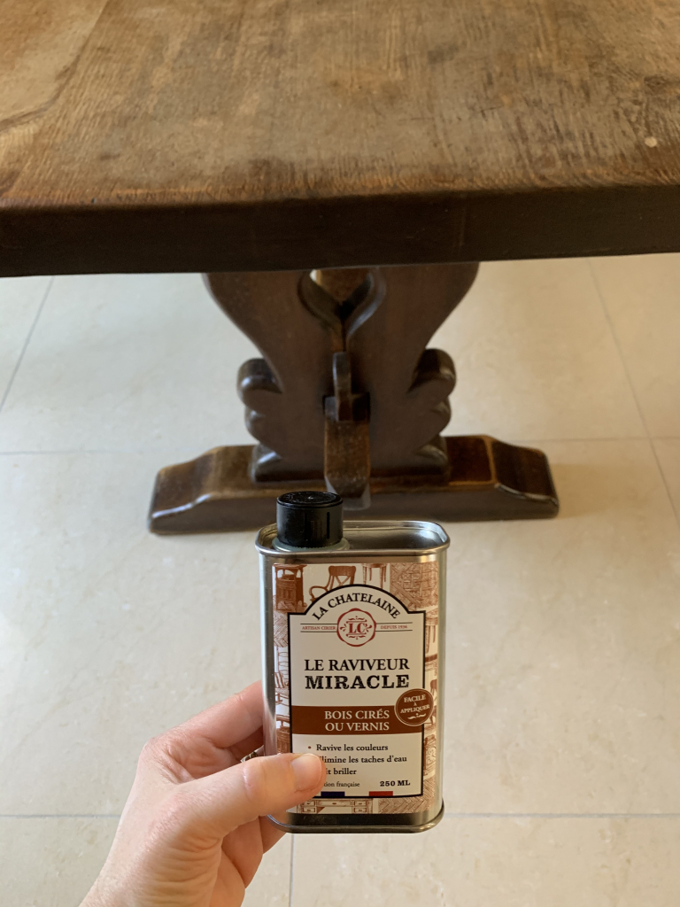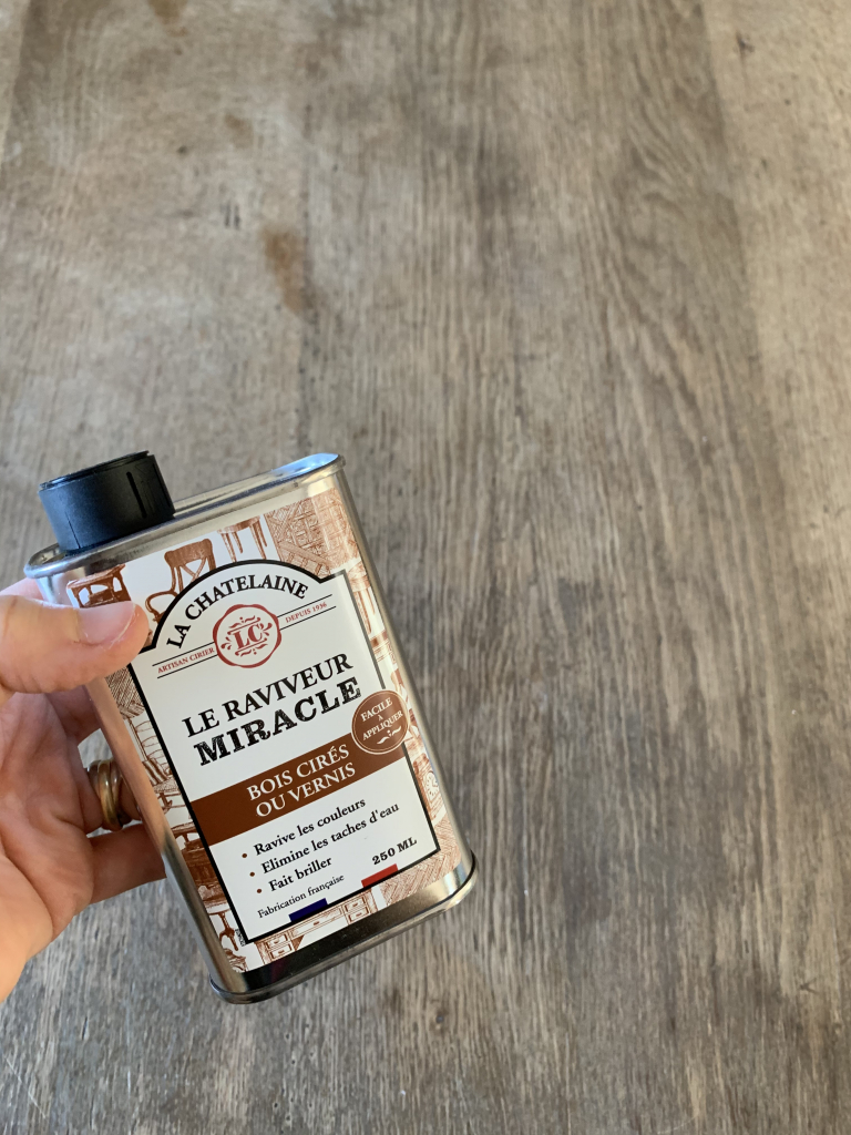 Je suis sentimentale avec mes vieux meubles, une valeur affective et cette table je la bichonne . Ce raviveur miracle bois ciré ou vernis la Chatelaine a été formidable. Concernant son application, j’ai dépoussiéré, j’ai appliqué, j’ai laissé et j’ai fait briller. Afin que le bois aspire un maximum des bienfaits, j’ai laissé le plus longtemps possible. Ce raviver aide a rénover les bois décolorés par le soleil, abimés par l’eau, le temps ou l’usure.