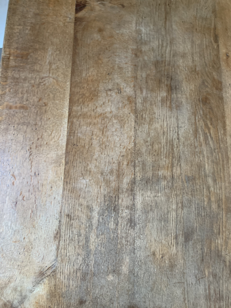 La table brille, le bois est bien plus beau, plus noble, quelques taches se font plus discrètes. Je pense comme pour le canapé renouveler avant l’automne.