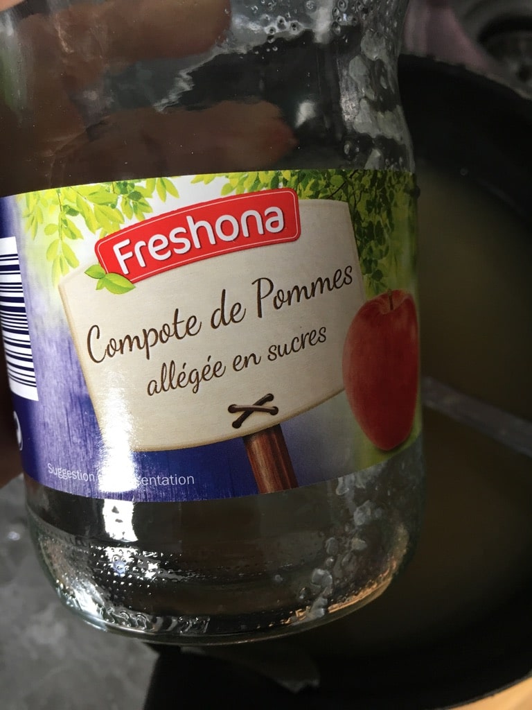 J’utilise de la compote de pommes, maison ou en bocal, 750 grammes.