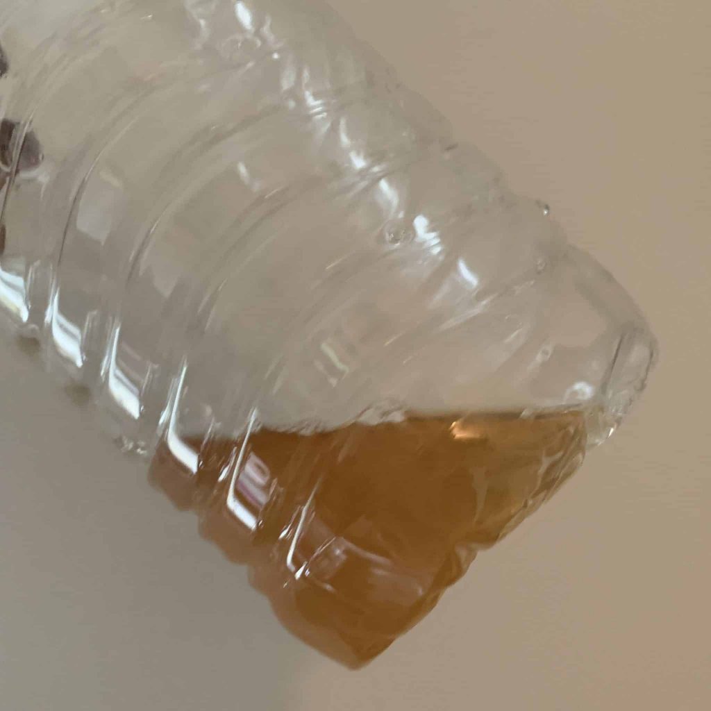 Premièrement, le draineur Turbo Draine Forte Pharma, il est aromatisé à la pêche. Il se dilue dans une bouteille d’eau de 1 litre ou 1 l,5 et se boit tout au long de la journée. Le gout de cette boisson est léger, ce n’est absoluement pas contraignant. J’aime plutôt bien ce draineur qui me fait penser a une eau aromatisée, c’est plaisant à boire.
