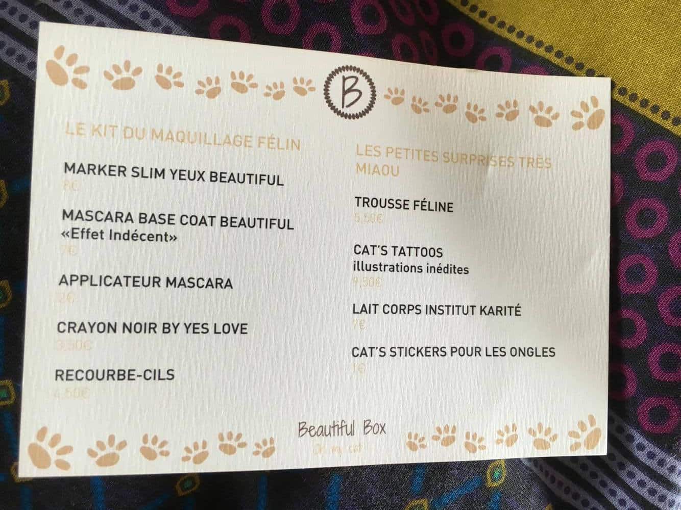 Le descriptif des produits avec leurs prix, la box coûte moins de 15 euros.