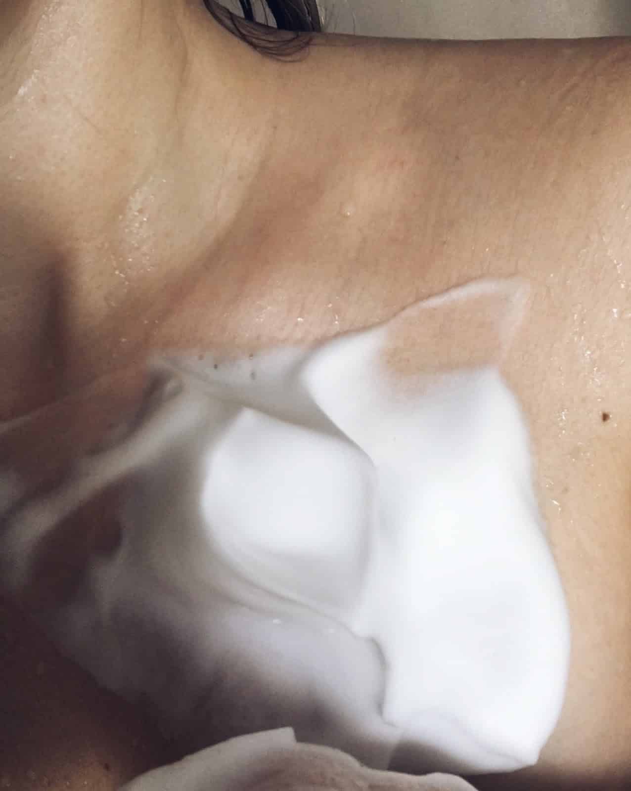 C’est la mode de la « mousse de douche » on en voit partout dans les supermarchés et honnêtement, j’adore le concept quand la composition est clean car c’est ultra ludique et onctueux sur la peau.