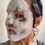C’est un masque tissus recouvert d’actifs ( acides de fruit) qui se met à mousser . Le soin est décrit comme capteur d’impuretés charbon et pulpe de cellulose. Pendant les 10 minutes, on passe un agréable moment de détente, le masque tient bien en place.
