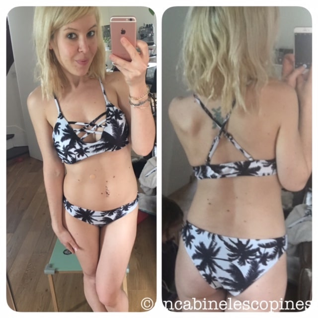 Je continue avec ce maillot de bain deux pièces qui a un imprimé toujours exotique et qui est sobre.