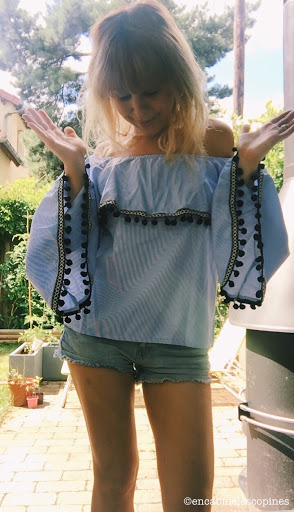 Un gros coup de coeur pour ma blouse à pompons, la combishort d’été .