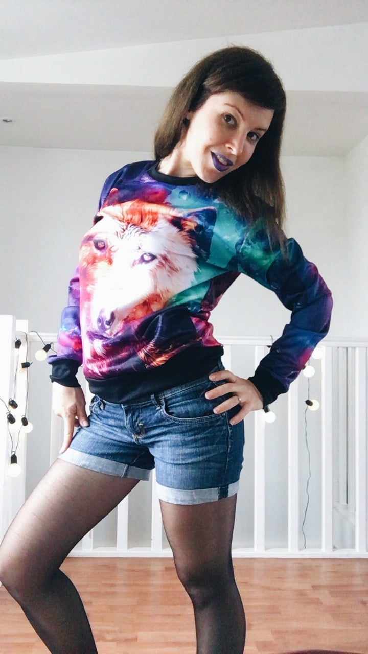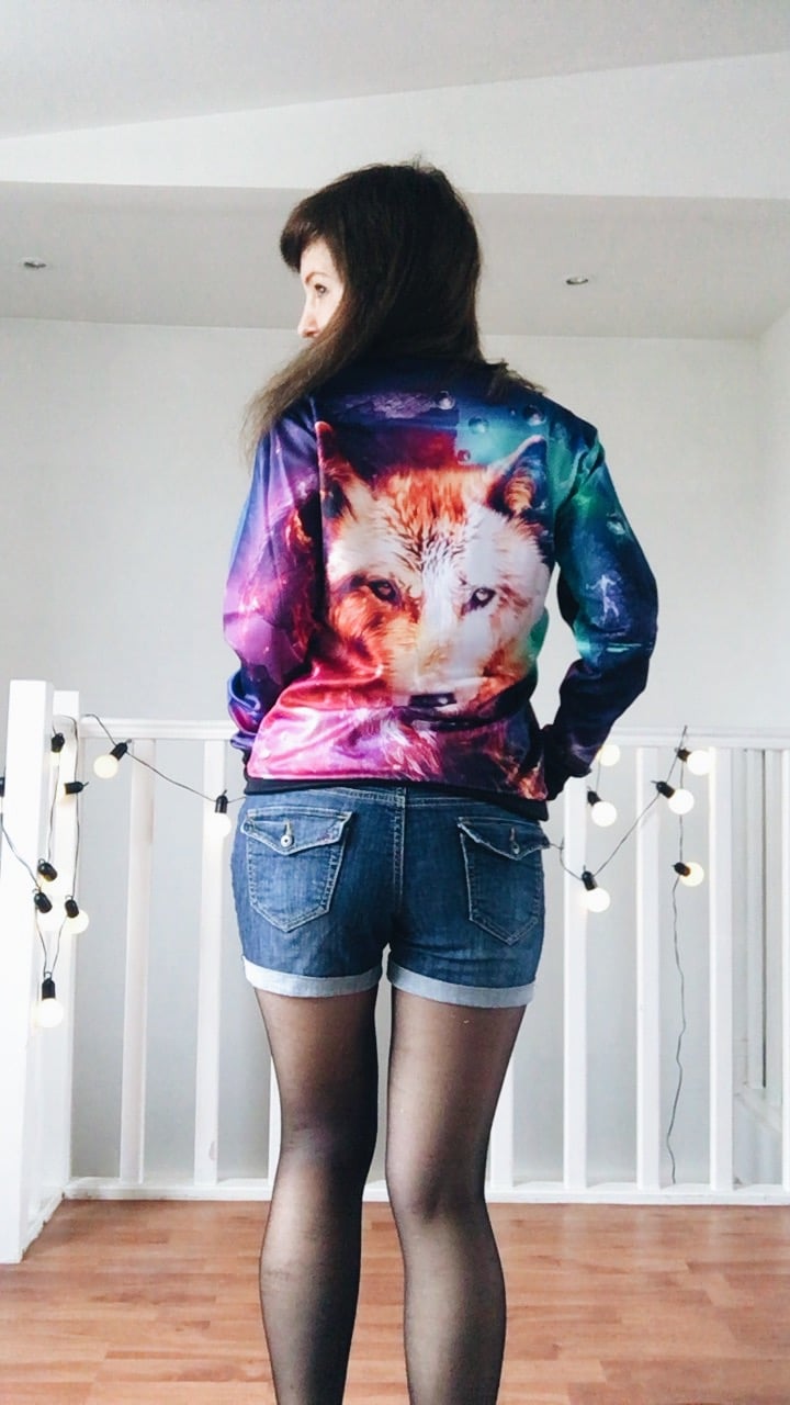 Ce sweat est super cool et agréable a porter, j’adore ce motif loup et à la fois voie lactée.