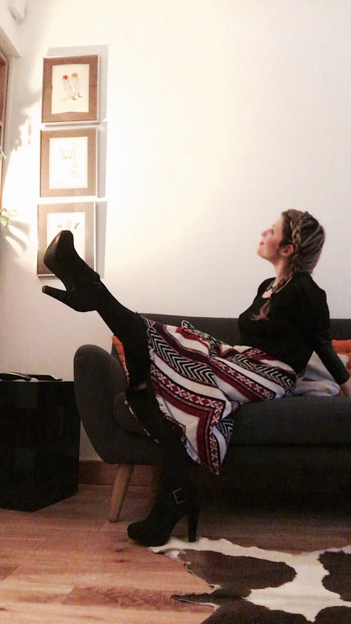 Je la porte avec des chaussures très hautes pour me donner une démarche Falbala dont le « F » de féminine.