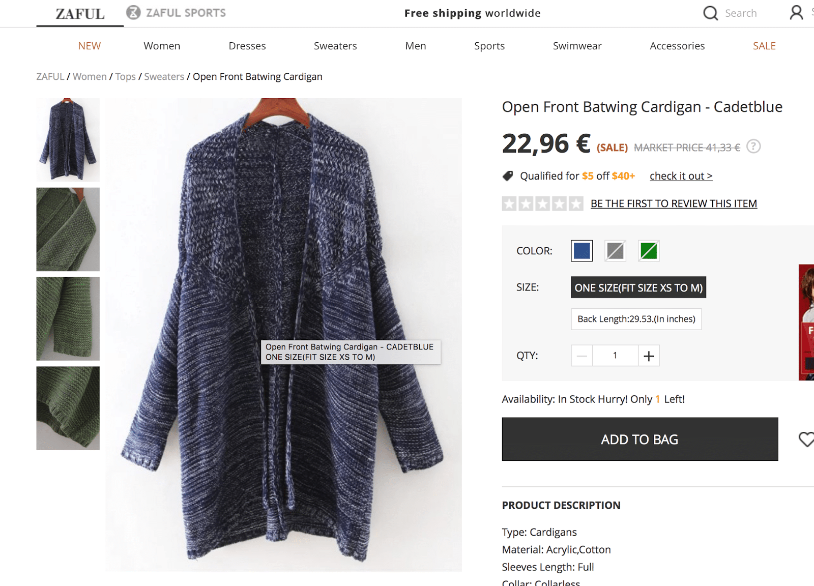 L’automne m’a donné l’envie d’une petite sélection de cardigans et des quelques sweat sur le site de Zaful que j’affectionne pour le choix, les petits prix et la qualité.