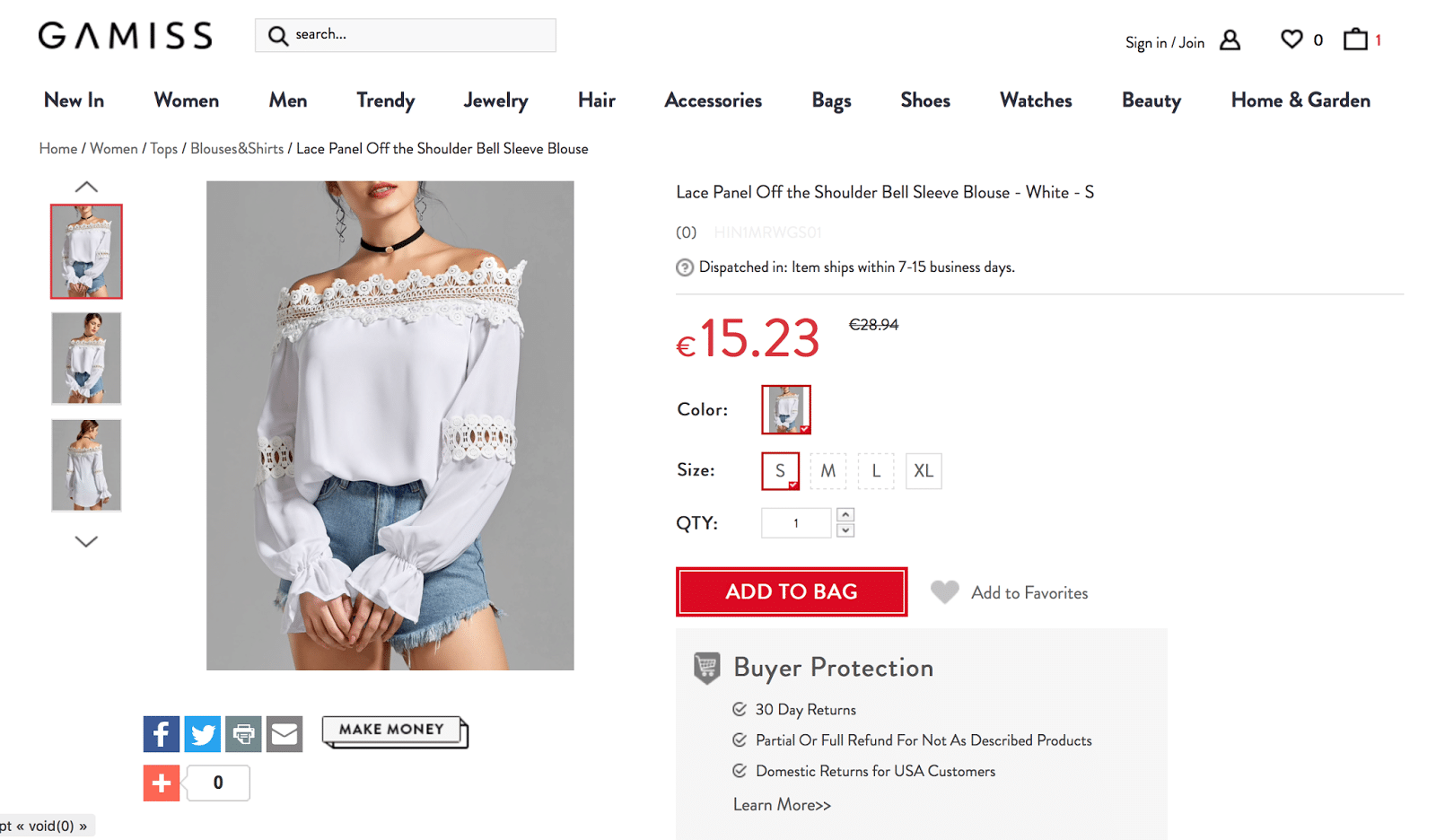 Une blouse adorable, blanche, brodée, parfaite. Je la guette car elle est souvent en rupture de stock en ma taille.