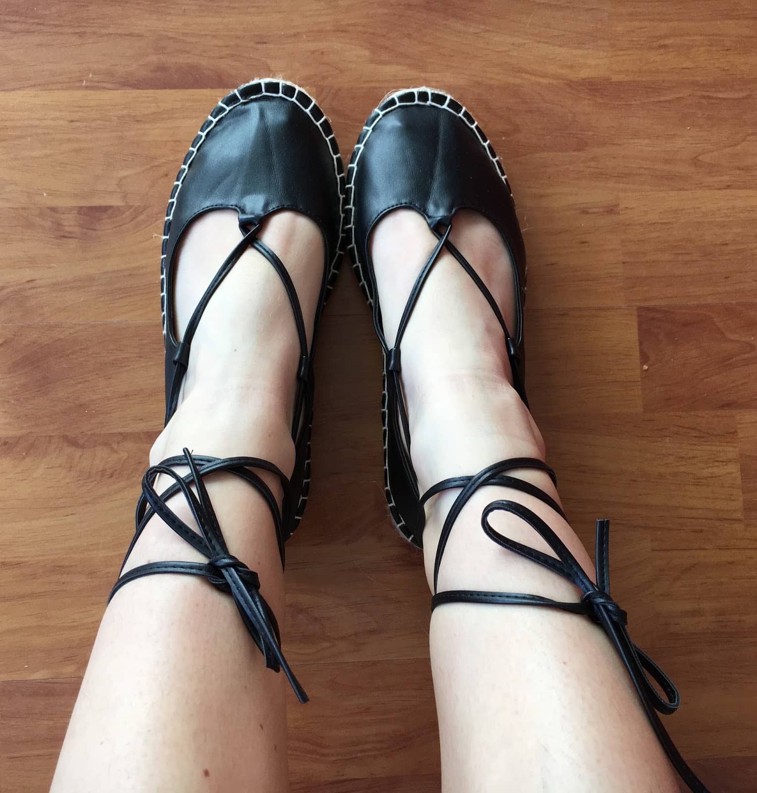 Je termine avec une paire d’espadrilles, simples et chics qui se nouent . Elles sont canonissimes, je suis ravie de les avoir pour les beaux jours.