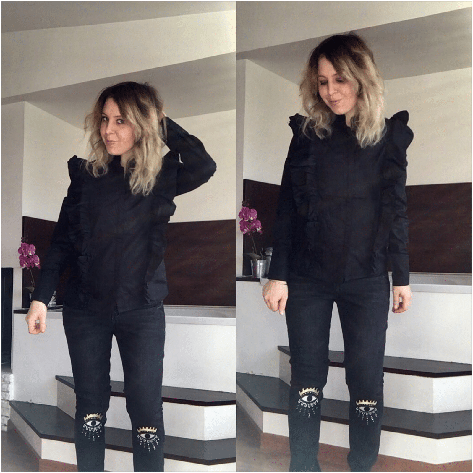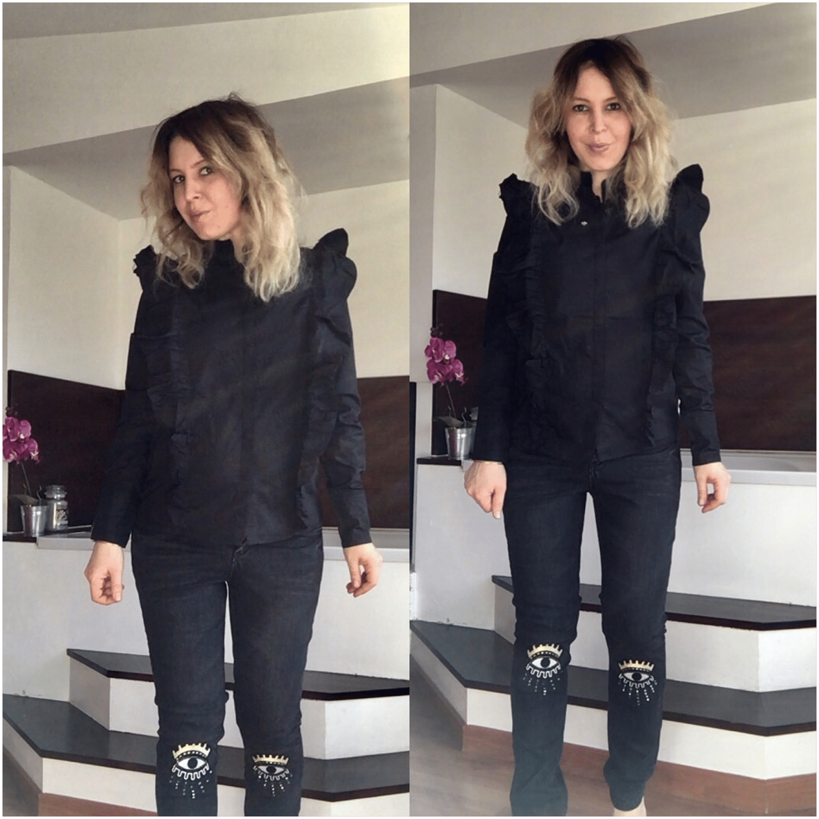 Le slim noir était soldé 17 euros, j’ai flashé sur les pièces des genoux .
