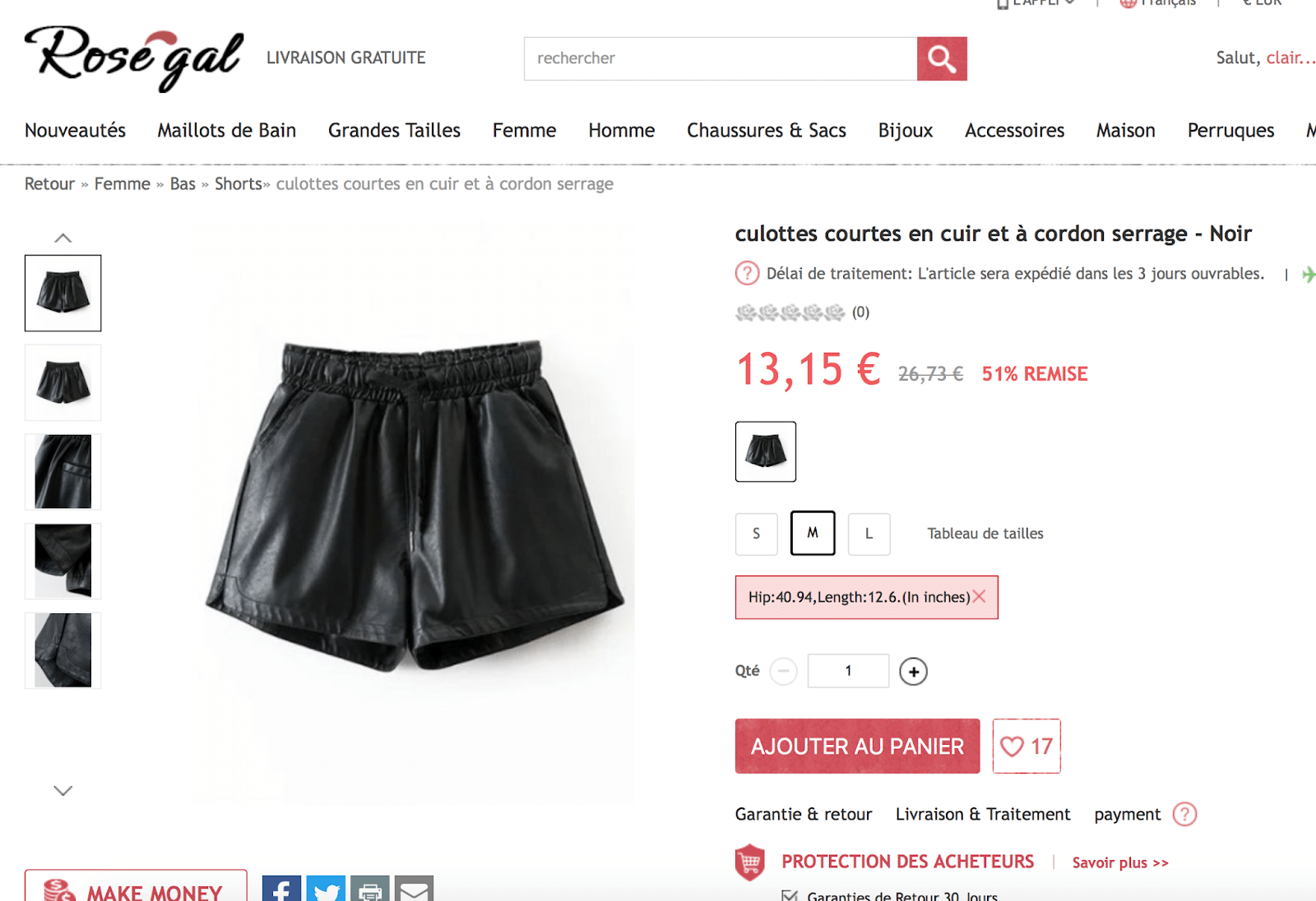 Je continue avec ma sélection, une wishlist Rosegal , j’ai sélectionné tous les vêtements en M.