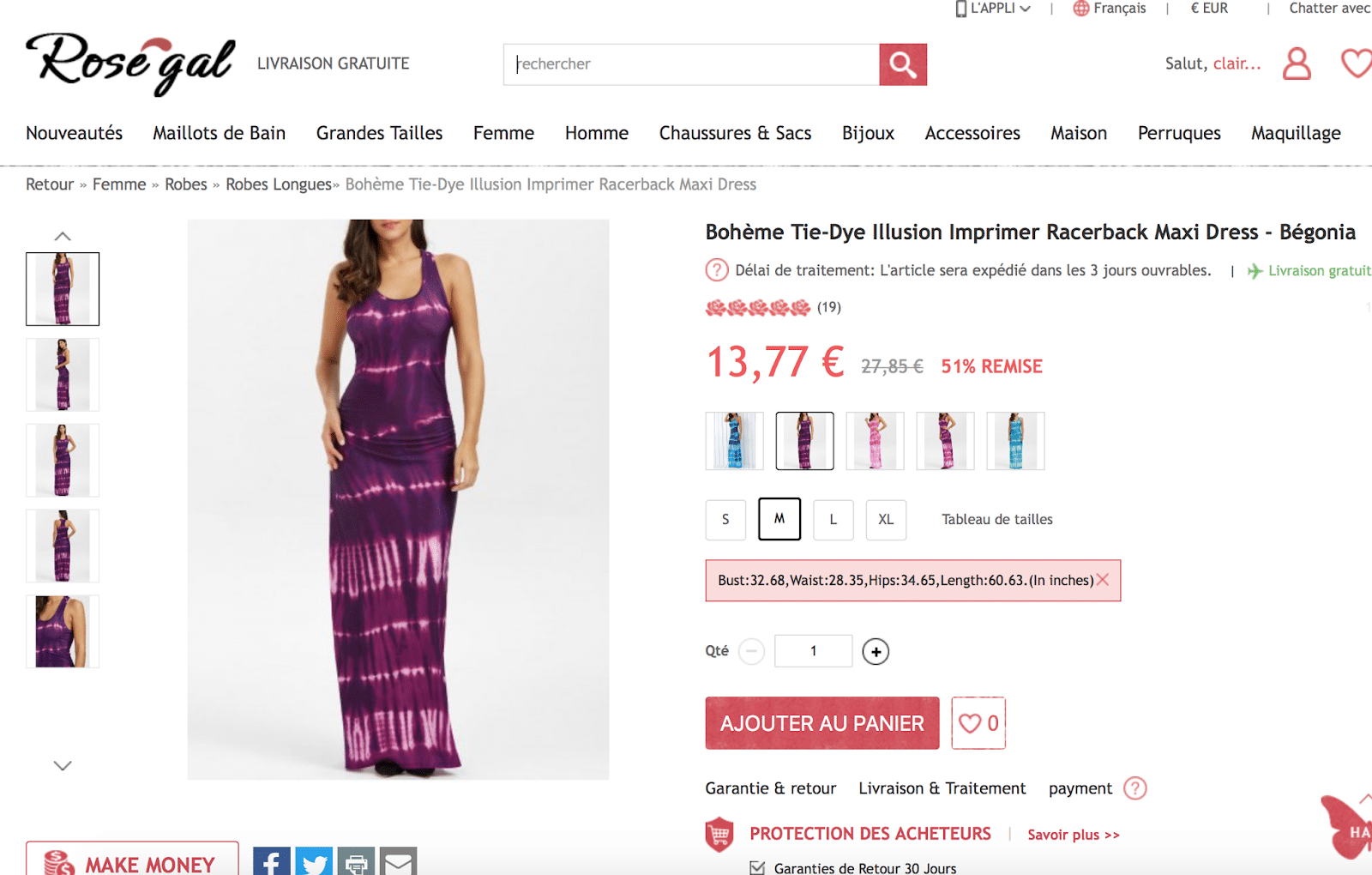 Un site chinois de qualité chinoise mais de bonne qualité, ça ne fait pas d’ailleurs tchip, sinon je ne porterai pas les vêtements, je suis trop coquette pour ça.
