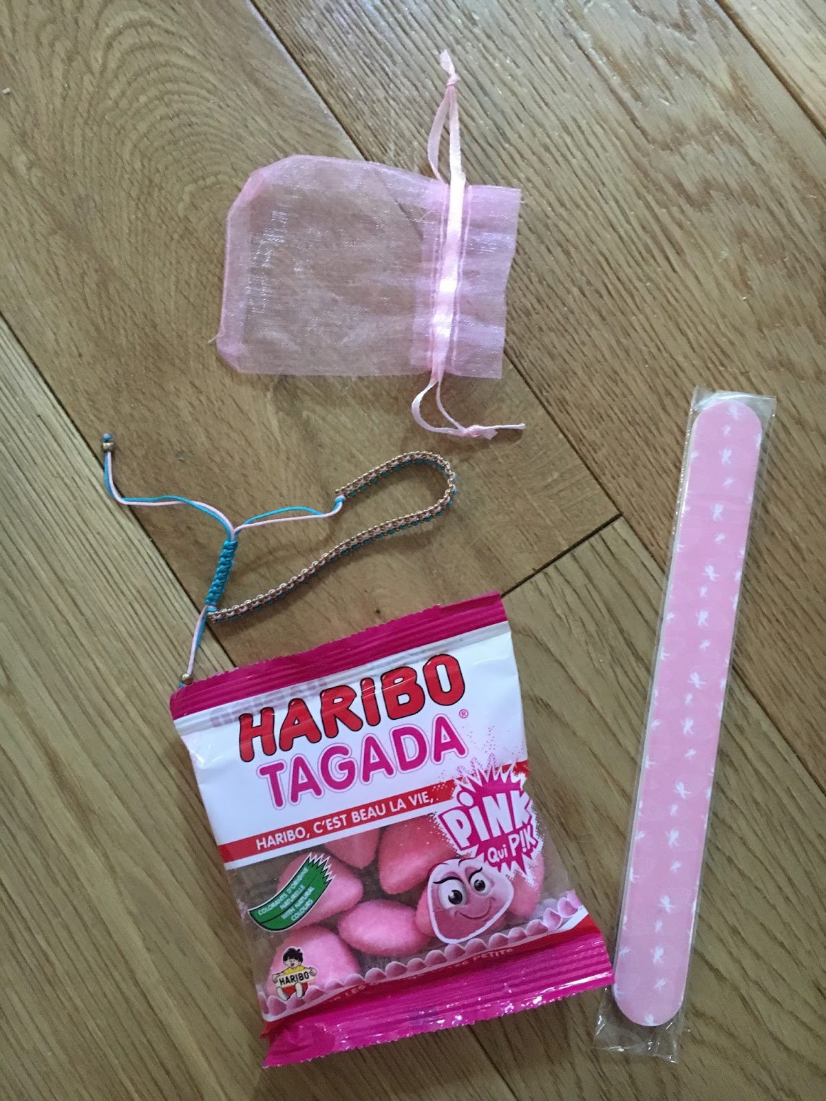 Un bracelet adorable dans les couleurs de la box, des fraises Tagada Pink je préfère les classiques mais j’ai apprécié le clin d’oeil, une lime à ongles avec des fraises dessus.
