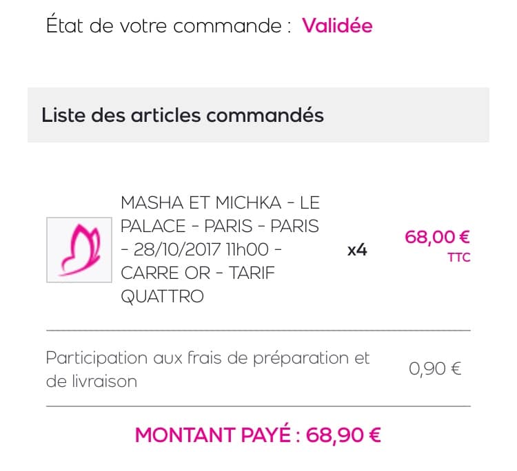 Je regrette une chose, c’est que sur les 4 places nous avons eu une place sur strapontin et j’ai pourtant appelé 3 fois le site vente privée pour demander à ce que ça soit changé, pour moi la catégorie or c’est pas pour être assis sur un strapontin .