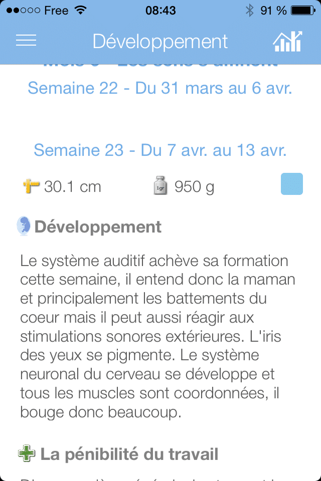En tout cas elle est pratique pour débuter sa grossesse, rassurante et elle donne des estimations de tailles pour imaginer son bébé, en le comparant avec un légume ou un fruit.