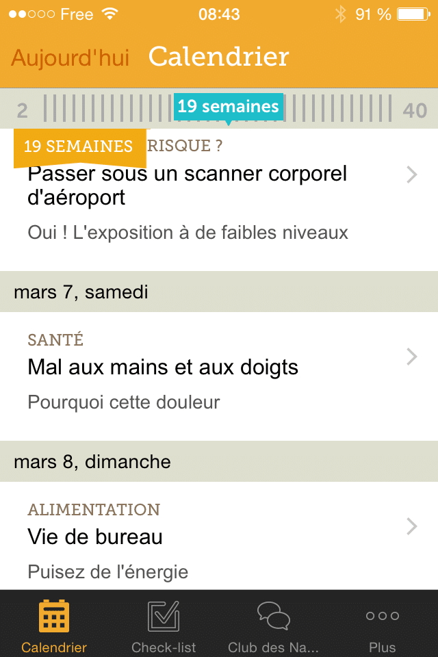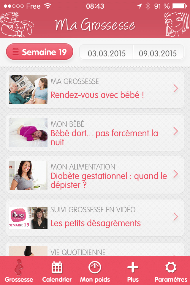 L’application de Doctissimo est très bien, je l’ai découverte un peu plus tard. J’ai mis des alertes pour les notifications car elle m’informe très bien sur le développement de mon bébé, sur mes examens santé, elle a un bon calendrier, les onglets sont bien répartis.