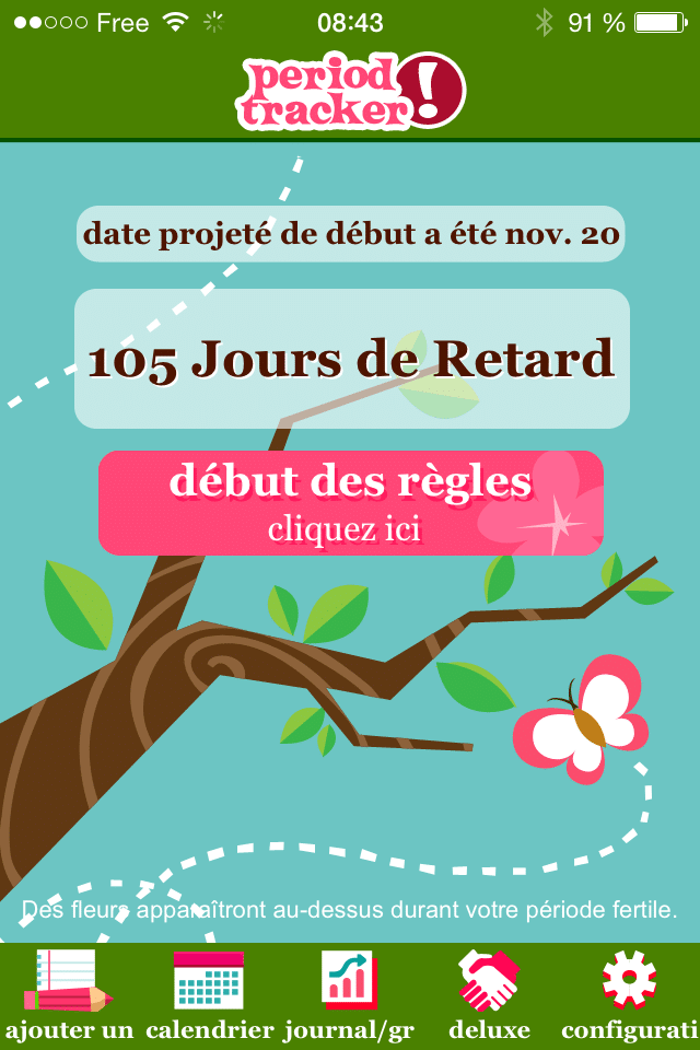 Vous pouvez mettre des notifications aussi quand vos règles débarquent pour ne pas être en panne de tampax et flinguer votre dernière culotte princesse tam tam qui coute un bras. Le design est mignon et elle est simple a utiliser .