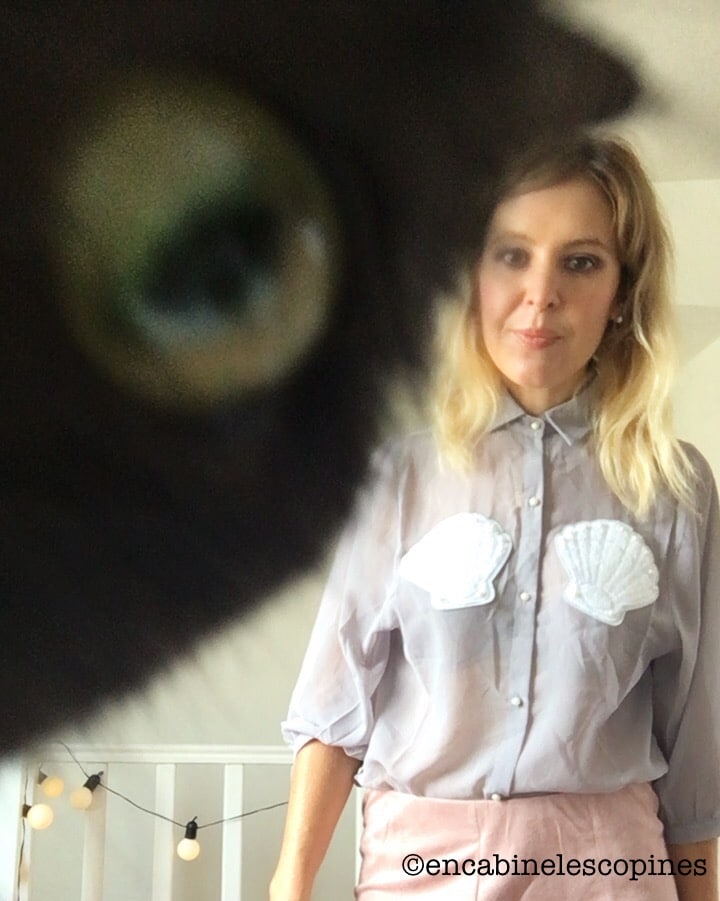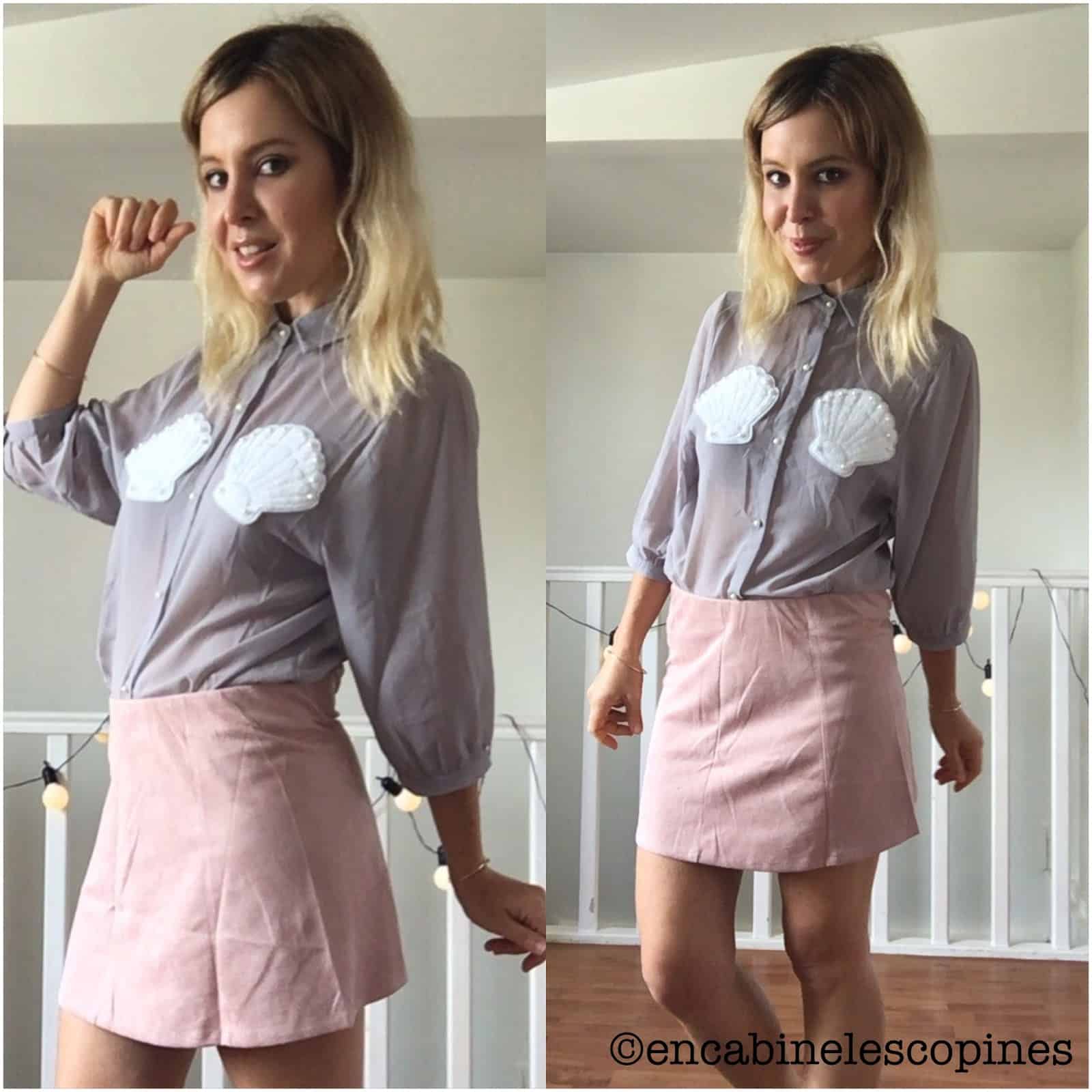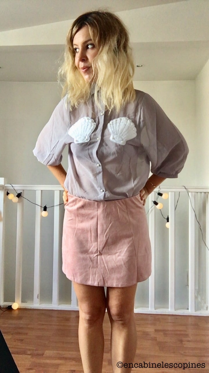 L’adorable chemisier coquillage avec des perles. Les détails sont trop mignons.