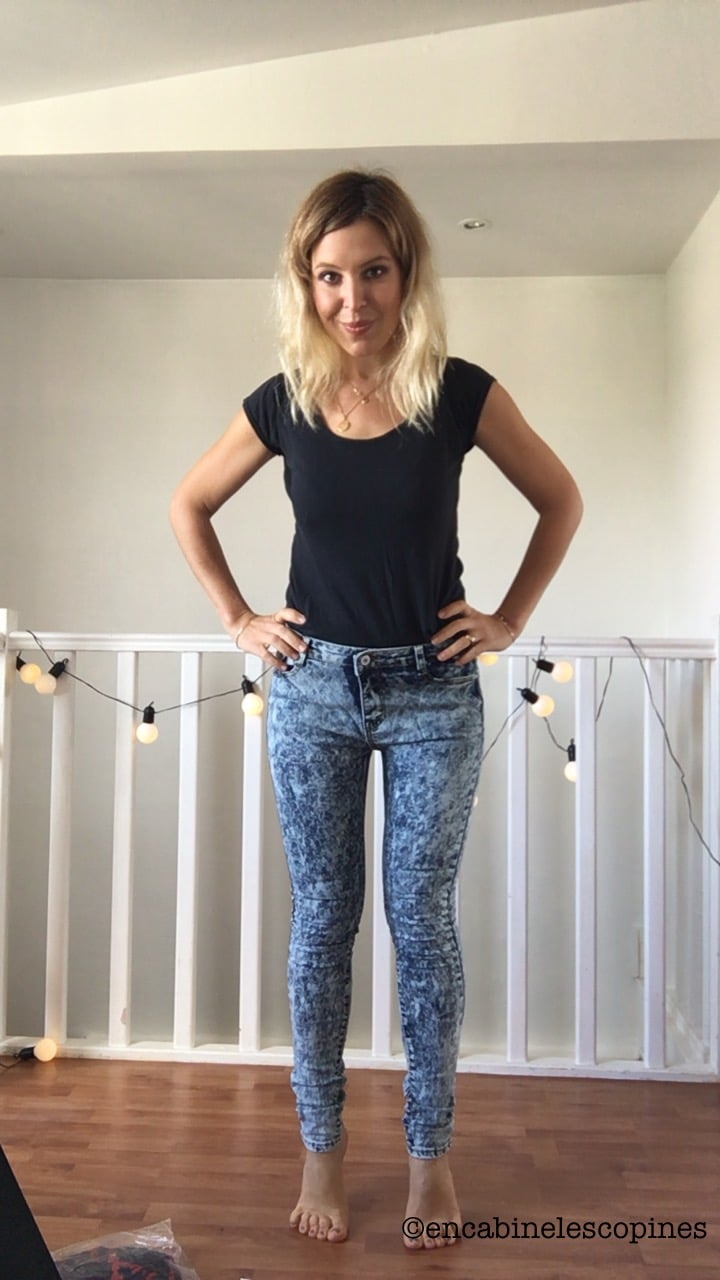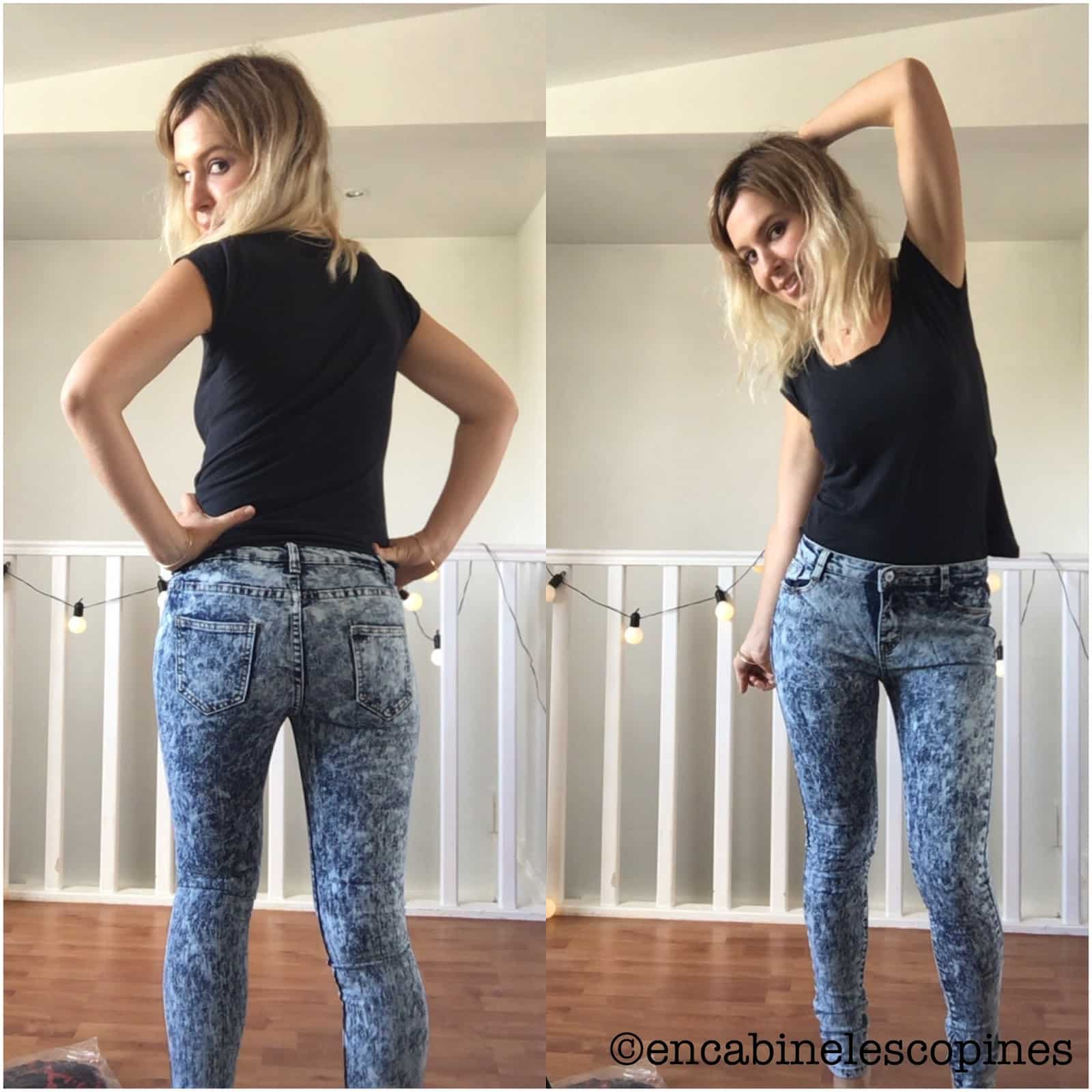 Mon jean délavé en taille M, un joli skinny, légèrement moulant mais il va se faire.