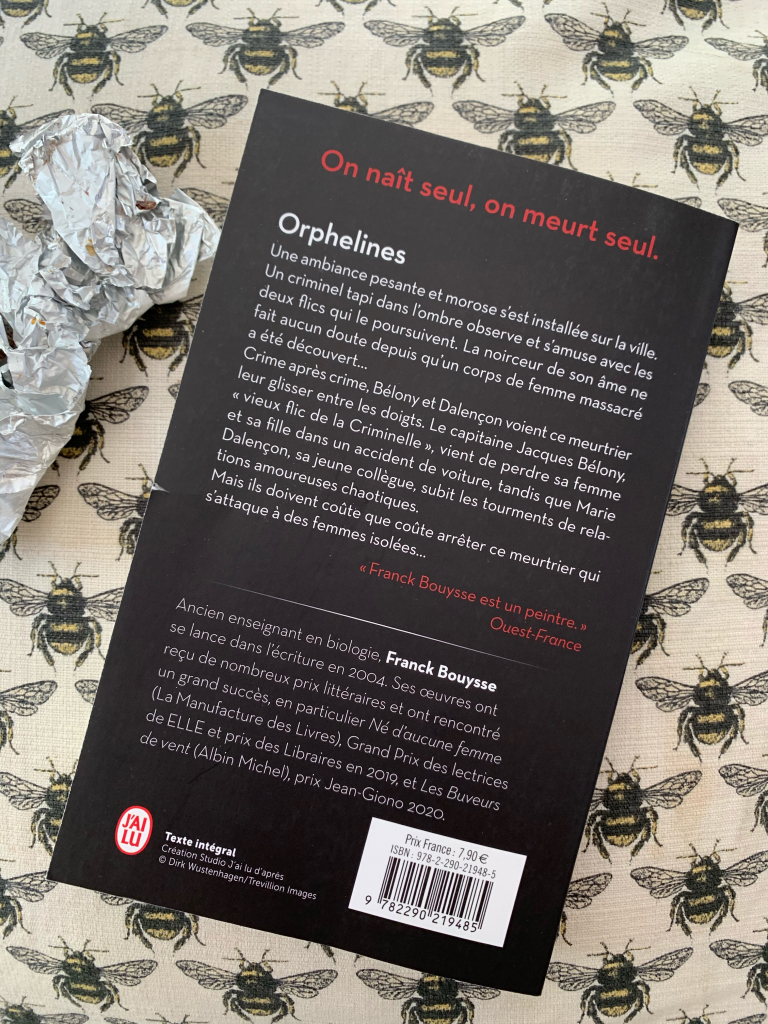 Rien que dans le titre, on comprend que c’est noir, que c’est horrible et qu’il est question de femmes assassinées. Orphelines, est un polar très noir. Un meurtrier sadique, des victimes, une ambiance lourde, qui colle à la peau et morose. Enfin et heureusement, un duo de flics, deux enquêteurs, un homme veuf malmené par la vie et une jeune femme. Pour faire aboutir cette enquête, il faudra remonter le profil et la psychologie du meurtrier. Ce n’est pas un grand polar, ce n’est pas le meilleur polar que j’ai pu lire, mais j’ai passé un bon moment de lecture. Je me suis laissée prendre par l’enquête et je l’ai terminé rassasiée.