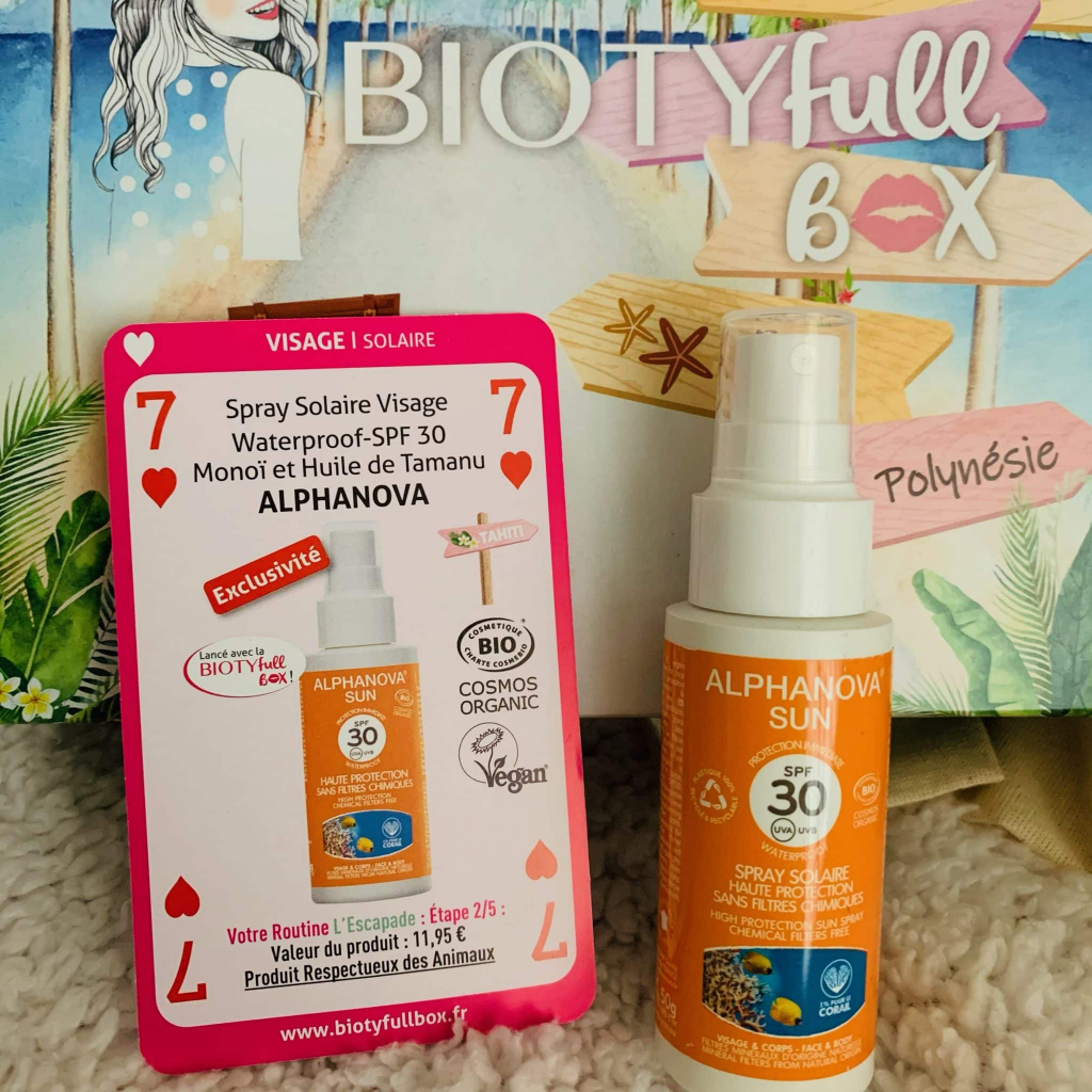 Etape 2, le Spray Solaire Visage Waterproof doté d’un spf 30, Alphanova Sun.