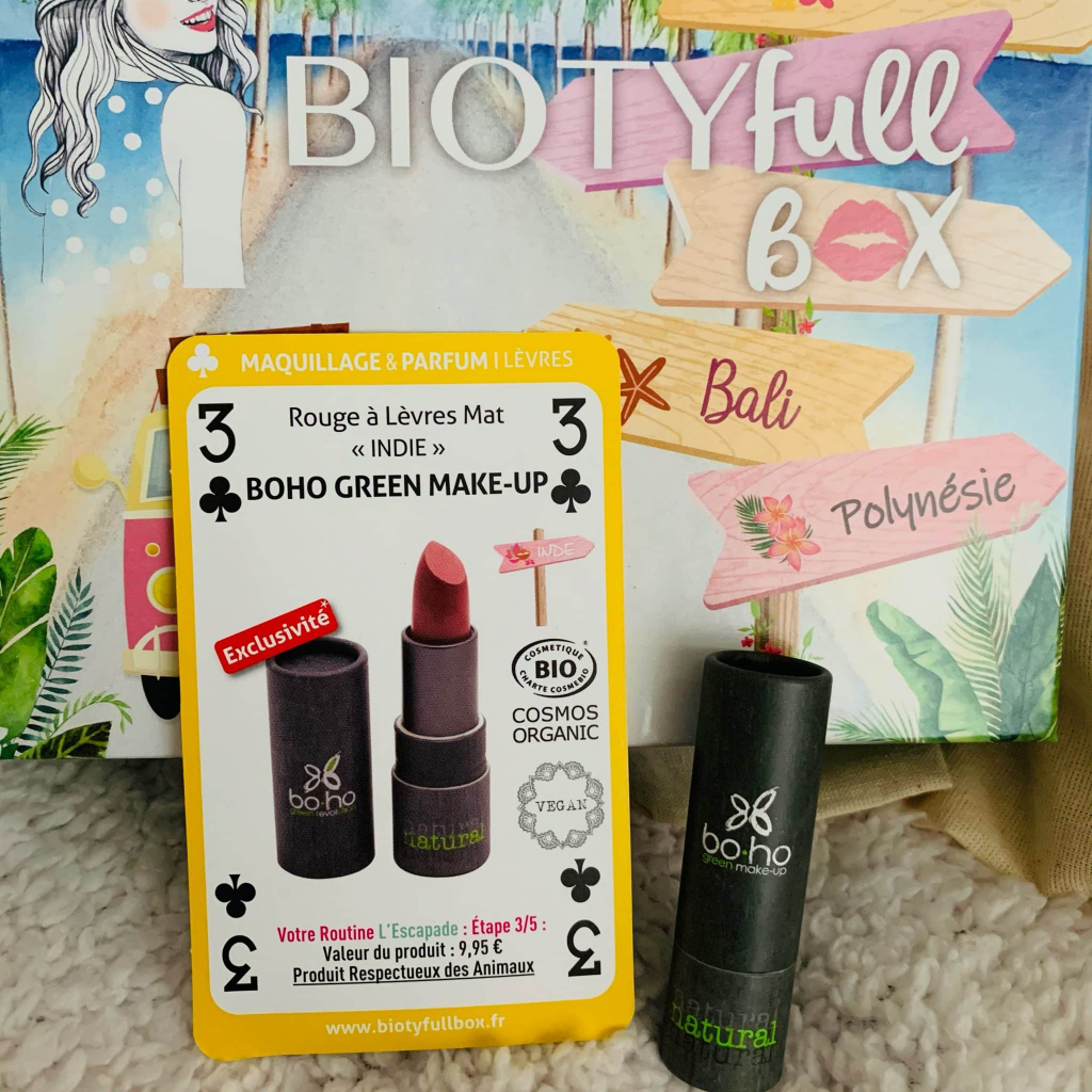 Etape 3, Boho Green Make-Up et son rouge à lèvre Mat Indie.