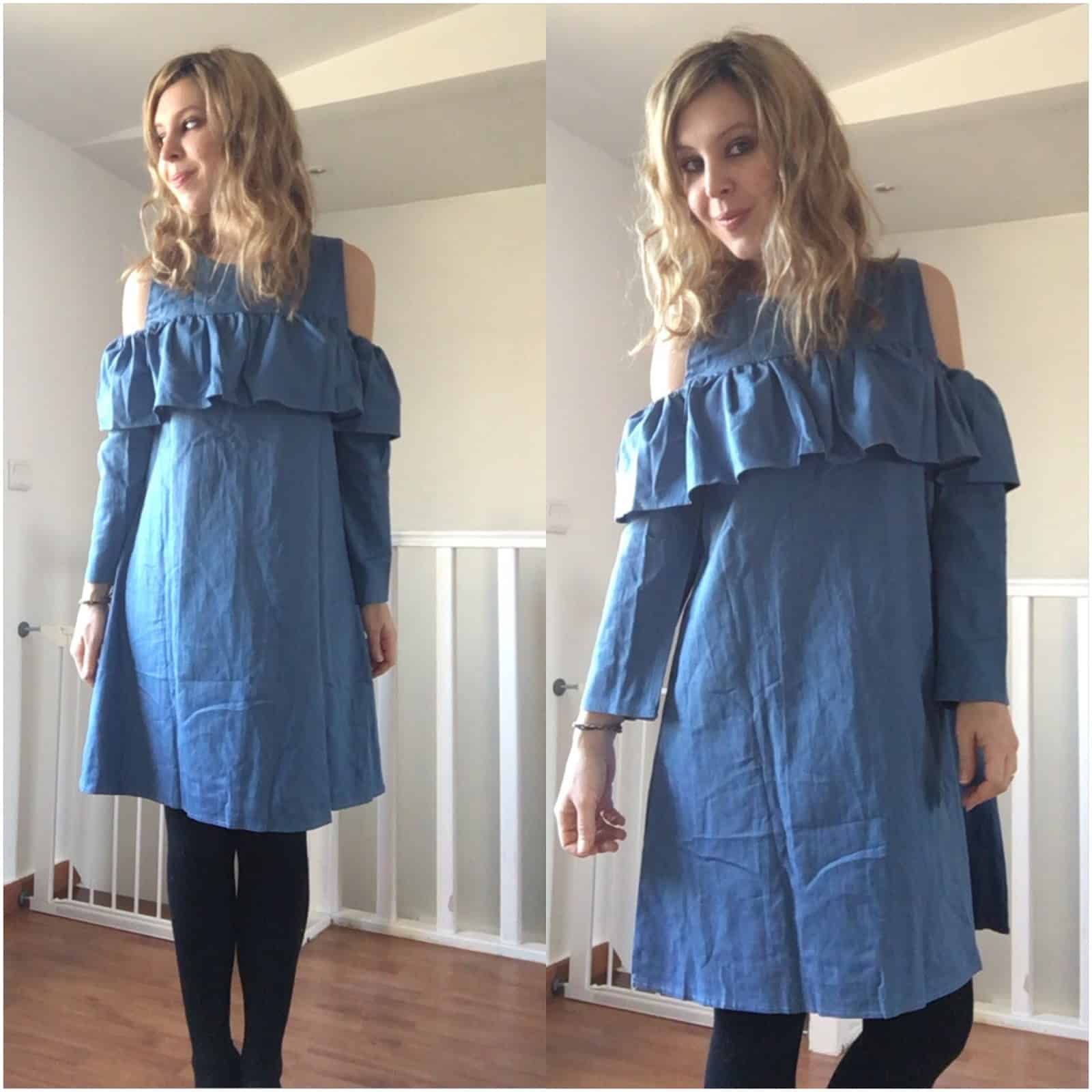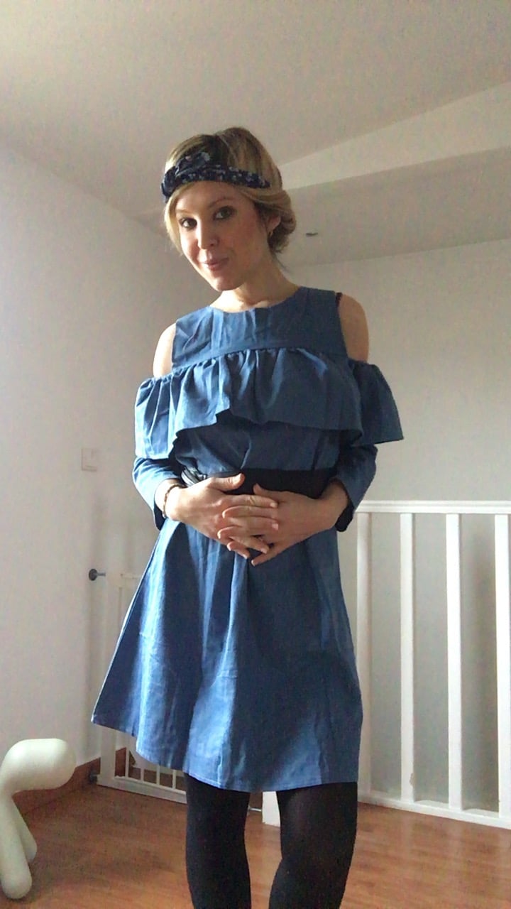 Je passe à ma robe en jean, froufrous et épaules dénudées . Elle est parfaite, je vous l’ai d’ailleurs partager sur Instagram . Je l’ai prise en taille L , je n’ai pas hésité à prendre plus grand pour être certaine qu’elle taille bien car je déteste être étriquée dans mes vêtements.