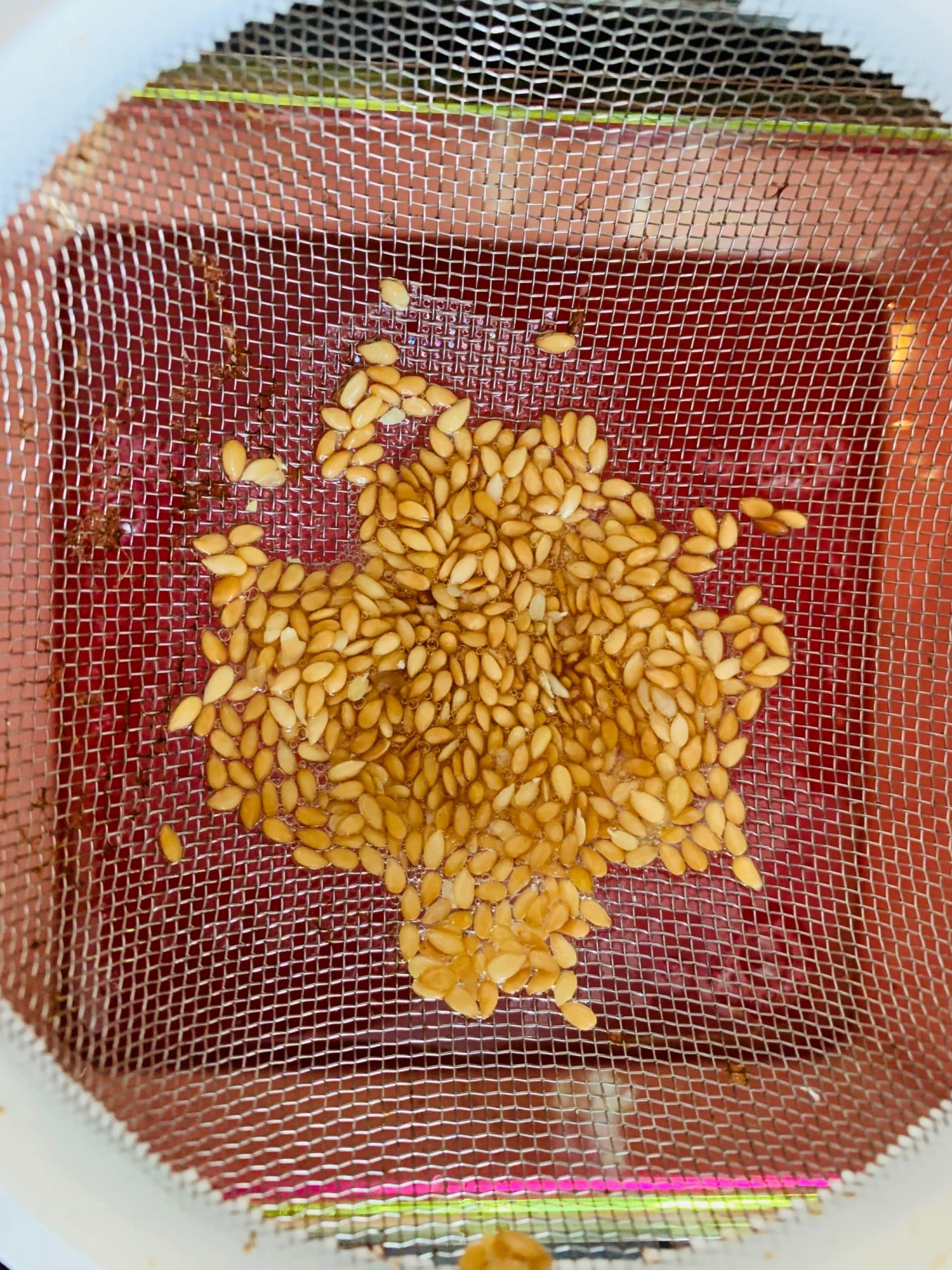 Premièrement, la veille, mettez des graines de lin dans un peu d’eau.